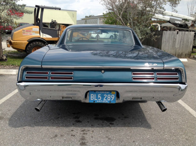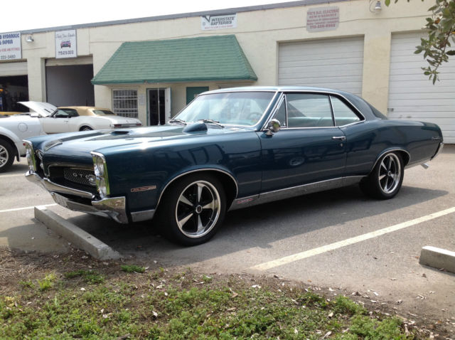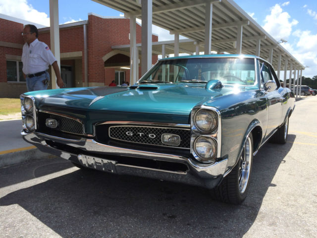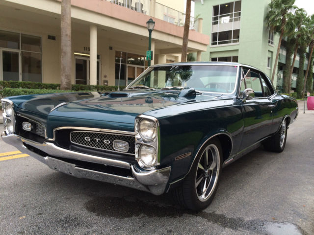 Floridaclassicauto.com is pleased to offer this very fine restified Gto! * PHS (Pontiac Historical Society) Documented GTO * Correct WS HO 400 V8 360 HP * Matching M20 Muncie 4-Speed * 3.55 Safety Track Differential * Hood Tach * Correct Mariner Turquoise Custom Paint Show Finish * Turquoise Legendary seat covers and new Taffeta head liner, original door panels aqua knobs. * 12:1 Ratio Power Steering * 245/17" Front 275/18" Rear Custom Rally II Style Custom Wheels with PMD caps * Gardner concourse stainless Exhaust system,correct ram air manifolds,Chrome Trumpet Style Tips * Stainless all Polished * Vintage Air Conditioning with dash vent outlet matched in color to interior. * Cadillac Interior Lamp group on inside c-pillars * New Correct Console * Dynamat Sound Deadening throughout * Rally Gauges * Rally upgraded Quartz Clock * Pontiac Floor Mats * Power Disc/Rear Drum Brakes * 2,000 Miles on Complete no expense spared Restoration performed by Florida Classic Automotive. * California built and always Western body GTO. Rear tail panel&trunk floor expert replacement * Drives, Sounds and handles excellent. * This Vehicle Just Won the Sponsors Choice and Vehicle excellence awards at the Elliott Museum 4/12/2015 Hutchinson Island Florida. * The 9786133 engine is date matched,as is the the 7027273 Quadrajet,stock date intake goes with car,have rally two factory rims if preferred for stock appearance. Please call 772.215.3512 or 772.285.1488 to schedule inspection or ask questions prior to bidding.This Gto is one of the nicest we have seen ,as such the reserve is realistic to coincide with Hagerty valuation based on HO 400 Speed Hardtop value for a number two car,please be prepared to bid accordingly.