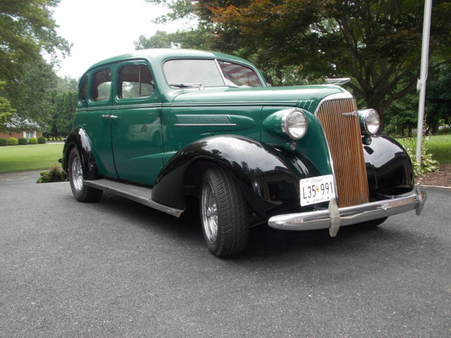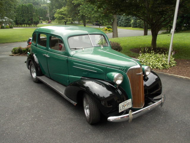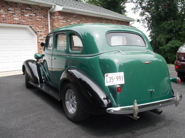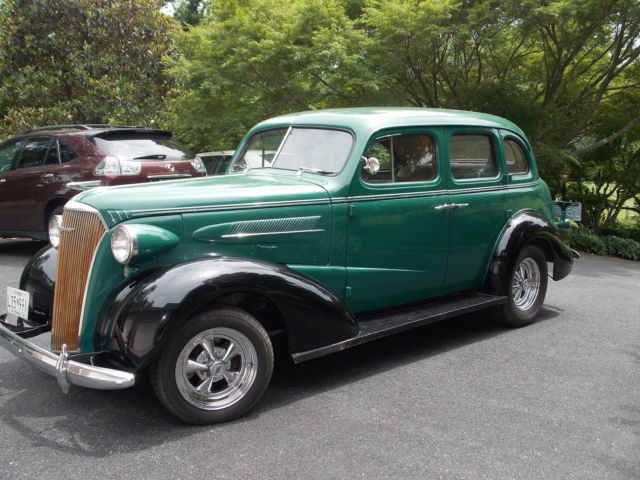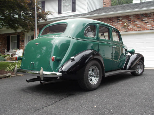 Classic 1937 Chevrolet Street Rod   Up for sale is this fine example of a vintage and traditional 4 door sedan Chevrolet street rod using up-to-date and modern modifications for comfort and dependability.  Owner started with a restored 1937 Chevrolet sedan (as photographed), added a 1995 Corvette driveline, independent front suspension, up to date wiring, and air conditioning.  This project was started in 2002 and is 95% complete.  There are less than 3000 miles on the odometer.  It is due to health reasons the car is up for sale.  This ’37 Chevy is reliable mechanically and electrically, it just needs some TLC and detail to be a true show winner.  Please view ALL photos carefully and feel free to call with any questions.   SPECIFICS   BODY   1)  All steel, 1937 Master Deluxe 4 door sedan, painted in its original Ivy green with black fenders.  There is very little body work in the car, but there are some problem areas, which include a cracked passenger window.  Floor pans and frame are solid.   2)  All of the windows and vent wings operate normally.   3)  Chrome is in fair condition   ENGINE, TRANSMISSION, & DIFFERENTIAL   1)  1995 Corvette (Vortec) 350 cu. in. with tuned-port fuel injection.  Rebuilt to stock specifications and 10:1 compression ratio.   2)  Sanderson ‘block hugger’ headers   3)  HEI ignition   4)  4L60E, 4-speed automatic transmission   5)  A/C unit which blows plenty of cool air   7)  Walker Heavy duty radiator   8)  1957 Chevrolet rear differential with 3.55:1 gears   9)  16 Gallon Stainless steel gas tank   10)  Custom battery box   SUSPENSION   1)  Mustang II independent front suspension with rack and pinion steering   2)  Power brakes with 11” discs up front and drums in the rear.   3)  Tires are Radials by Cooper on Cragar wheels:          Front  195 x 60R x 15          Rear   235 X 70R x 15   INTERIOR   1)  Original ‘mohair’ in excellent condition   2)  “Classic” gauges:  Speedometer, Volts, Water Temp, Oil Pressure, and Fuel level (in good working order)   3)  Lokar shifter   4)  1995 Corvette tilt steering column   5)  Kenwood AM/FM/CD player   6)  Painless wiring harness and fuse box.   PLEASE NOTE I AM LISTING THIS VEHICLE FOR A PRIVATE PARTY AND WILL ADDRESS ALL QUESTIONS @ 410-937-0719….J.D.   NO TRADES   CAR IS SOLD AS IS AND WITHOUT WARRANTY   PLEASE VIEW ALL PHOTOS CAREFULLY.