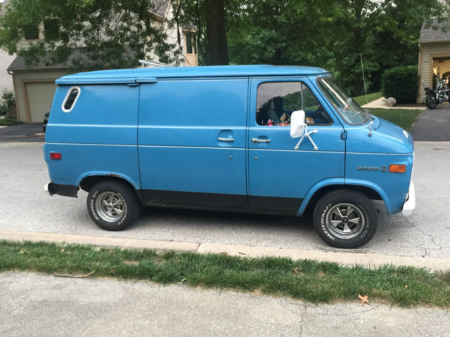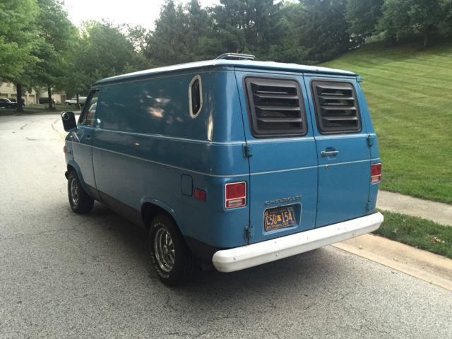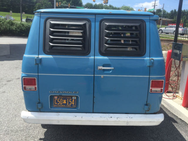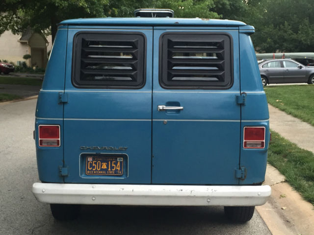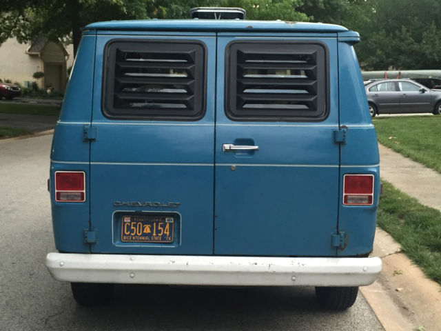1974 Chevrolet G10 Original Paint 81,000 Original Miles 250 Straight 6 3 on the Tree Manual Transmission For sale is my baby. 74' Chevy Van. I bought this last year from a neighbor of the original owner (I believe I am the 3rd). He only used to to travel back and forth to Jazz Festivals. I was very lucky to be able to score it. I had intentions of making it a work truck for my motorcycle business, but its too nice and rare & business has been slow, so here it is. It has some spots of rust, The floors are solid. I would fix the wheel arches, and the door bottoms. This is a nice old van that runs and drives and needs TLC. I drive it as is and have no problems. We recently drove this baby to Brimfield, Mass and back with no problems. It averages 19 mpg on the highway at 70mph. A little less with full cargo. It starts right up with no problems and drives and brakes fine. It has brand new tires with less thank 2k on them. I change the oil every 2500 with Mobil. I have the original radio that just was rebuilt and an Aux cord was added to it that will go with the Van. Its still on the shelf. The truck does have an exhaust leak and I would have the exhaust fixed, but again I've been using as is. The body is very straight for a Van of its age. I'm sure I'm leaving something out, So please ask any questions prior to bidding or have someone come inspect it prior to your Bid/Purchase. Payment due within 5 days of auction end. Sorry no exceptions. Do not bid if this is not acceptable to you. The Vehicle is located in West Chester, PA 19382 and I can deliver or help any shipping arraignments. I can also deliver it or arrange pickup from the Philadelphia International Airport.
