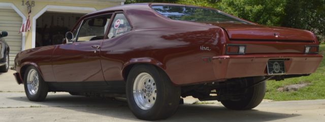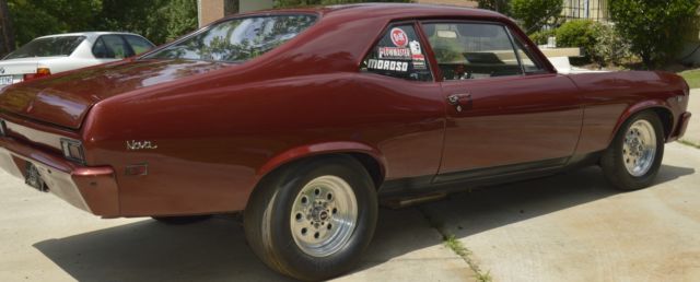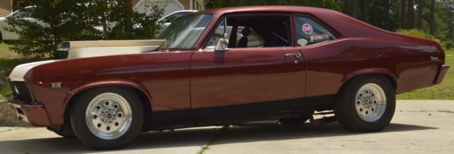THE ULTIMATE EARLY CHRISTMAS GIFT!! This Nova has a nasty 427CI professionally built 13:5:1 stroker engine, courtesy of Sam Odom(owner of S&M machine shop Macon,GA & professional drag racer). This balanced and blueprinted engine features: BME aluminum rods, Wiesco pistons, Lunati full roller cam, Lunati roller rockers, race prepped Chevy iron heads with large valves, 1150 Dominator carb, and more! This car has never been raced only tested a few times on the street since built, I honestly couldn't tell you how fast this current setup is. I will say I have had my share of 10 sec street cars and this car will blow the doors off of any street car I have ever driven. It's at worst a mid to low 9 sec machine and that's without nitro which it is more than capable of handling. It's been a while since I looked at my build sheet but the engine was estimated to be 650+ HP. I will provide more details upon request but don't want to disclose to many details, I live in a racers town and if I ever decided to race it at the track I don't want all my secrets leaked!! I will respectfully consider reasonable offers so please send them in and good luck!! Thanks for stopping by.