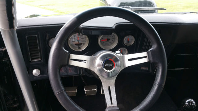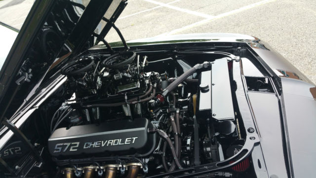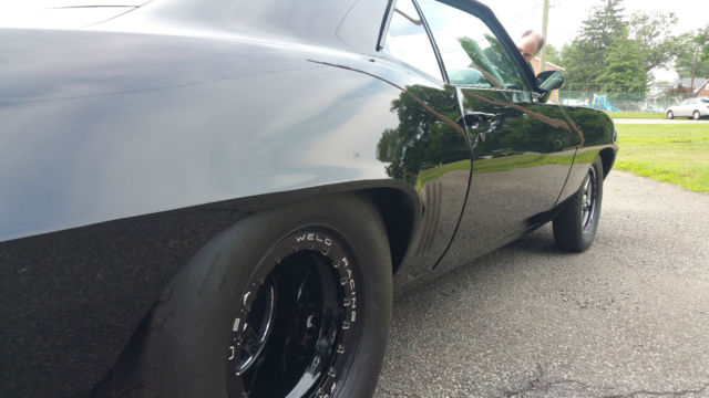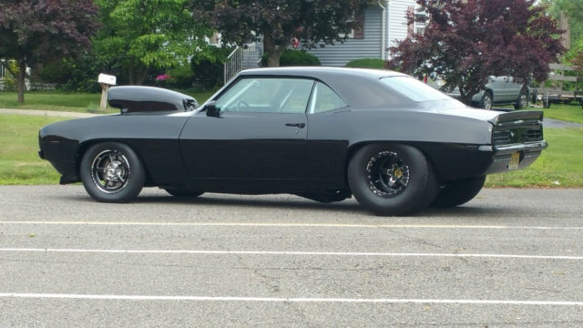 BODYFreshly Finished "Laser Straight" GM Black ..No Expense spared on paintjob .Took over 6 months.Hood is GM with fiberglass Hardwood Scoop professionally molded in and underside is fully customized and finished mirror straight .One of a kind and.thousands spent making hood fit and look perfect on car . Also matte black z/28 stripes painted (not stickers) on hood and trunkRS Grill with electric hide-a- away headlights. All outside chrome has been professionally powdercoated black.Origanal body except for door skins. INTERIORProfessionally done with new headliner, rug, mats,seats (adjustable) and back also w/ 572 stitched inDash has been painted and also a new dash padAutometer guage cluster professionally installedLeather wrapped steering wheelSimpson racing belts8 point NHRA legal cage w/ removeable swingouts (easy/ingress/egress) professionally painted (GM Silver)MOTOR572R w/sheetmetal manifold by Hogan10.5 compression on pump gas (91-93)2- 650 holley carbs built and tuned by Nickerson Performance CarburatersBrodix heads made for motorJesel rockers and liftersMoroso oil panThis motor was professionally built and dynoed at 825 flywheel hp. on pump gasStainless steel 2 inch primary headers going to a 3 inch exhaust with X pipe and flomaster mufflersAll MSD ignition with 7 AL2 boxRon Davis radiator never goes over 185even in trafficFIREWALL..smoothed and finshed laser straight and painted blackMany engine pieces have been professionally powdercoated black also all hoses blackall hoses and fitting are high quality partsTRANSTremec 5 speed w/ overdrive built by G Forcemade to handle 750 ftlbs of torque..mMade to powershift any gearShort throw billet shifterDual clutch set up for 850 hp (Easy pedal)Heavy duty steel bellhousing4 inch aluminum driveshaft with 1350 u jointsDana 60 rear with HD posi unit and 4:56 gearsMark Williams 35 spline axlesLadder Bars with Coil overs in rearStrange Single adjustable rear shocksFRONT all new but stockQA1 coil overs w/ single adjustable shocksNew Quick ratio PS boxBRAKESWilwood 4 wheel discWilwood Billet master CylinderWilwood Emergency brake setupWHEEL and TIRESMickey Thompson RS Radials Fronts 26x4Rears 31x18Weld Alumalite black anadizedfront 15x3.5rear outside beadlock 15x15 with fancy billet aluminum lugnutsTrunk Professioanlly finished15 gallon fuel cell2 optima batteries in billet holders powercoated blackHood hinges door handles, radiator support, marker light bezels all Fezzler billetThis Camaro although has all the legal requirements for racing was built 100% for the streetincluding windshield wipers, power steering, heat, defrost. NO a/c or radioBuyers resposabilty for shipping (will work buyer)Deposit of $500 is required . Car will not be released until funds have clearedyoutube video linkhttps://youtu.be/hv_aKUIgp_E (Copy and paste or type telesco camaro in youtube search)