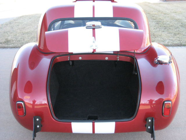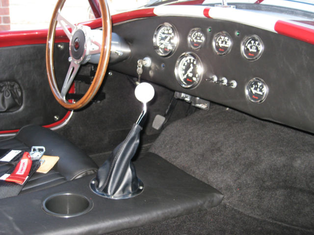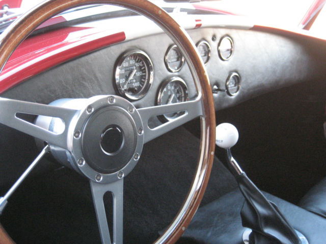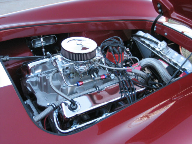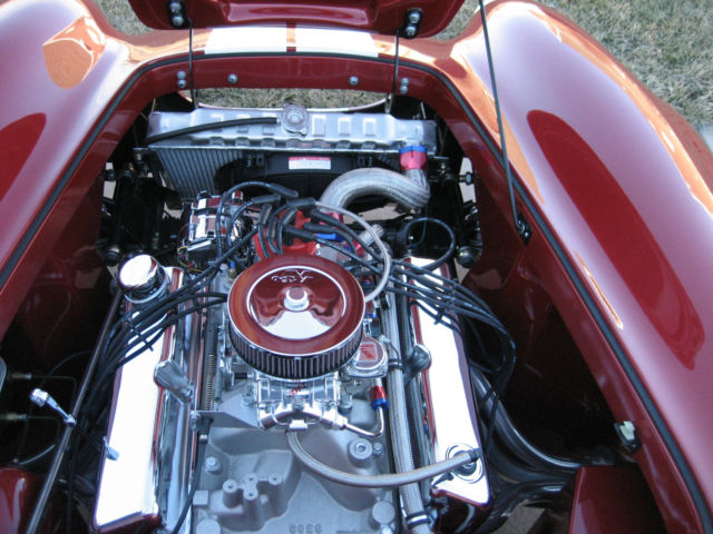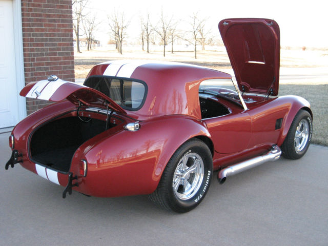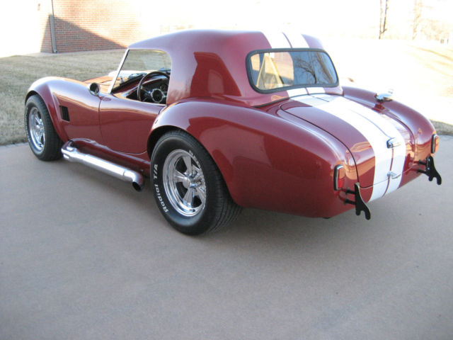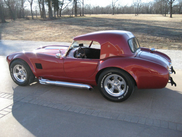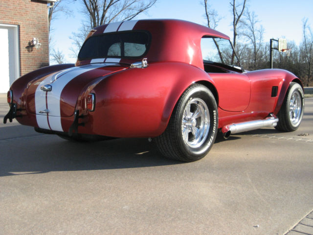 351 Windsor Crate motor from ATK Performance Engines Edlebrock aluminum heads Roller cam and rockers 680 Quickfuel carb Weiand Stealth intake MSD Ready to Run ignition with a built in rev limiter The motor was dynoed by ATK before delivery and peaked at 400 hp and 423 ft. lbs. of torque. I have all of the dyno sheets. Heavy duty Ford Racing 5 speed transmission Narrowed Ford 9" rear with a 3.80 posi-track gear Manual rack and pinion steering 4 wheel manual disc brakes QA1 adjustable shocks on all 4 corners The interior of the car is lined with Cool It Thermo Tech liner for heat and sound deadening Floors are dropped 3" for more leg room and driver comfort "I Did It" steering column and a custom Haywire wiring harness that is loomed nicely to hide all of the wiring possible for a clean look under the hood Dupont Radiant Red Metallic paint with Ford Wimbledon White stripe, base-clear system Rocket polished aluminum wheels and BF Goodrich TA radials all around Removable hardtop that takes about 5 minutes to remove Ceramic coated headers and sidepipes. Tires have never been spun on the pavement, no burn outs. Only 700 miles on this car, basically just enough to work the bugs out. This car was hand built by me personally the way I thought it should be done. I didn't cut corners, it's done right. The only flaw I have found is a small spider crack on the right rear quarter panel. I tried to take some pictures but it wouldn't show up. No electroncs, no fuel injection, just a nice carburetor and lots of power. No power assist brakes or steering, all is very simple and easy to work on if necessary,very simple and dependable. Carb has an electric choke and starts and runs like it should. This car runs and drives great. Call or text Brian @ 417-276-1193 with any questions.