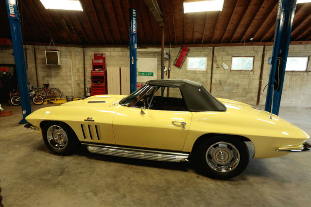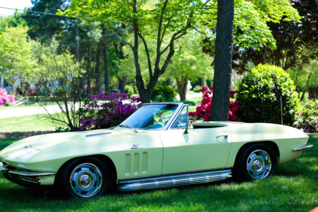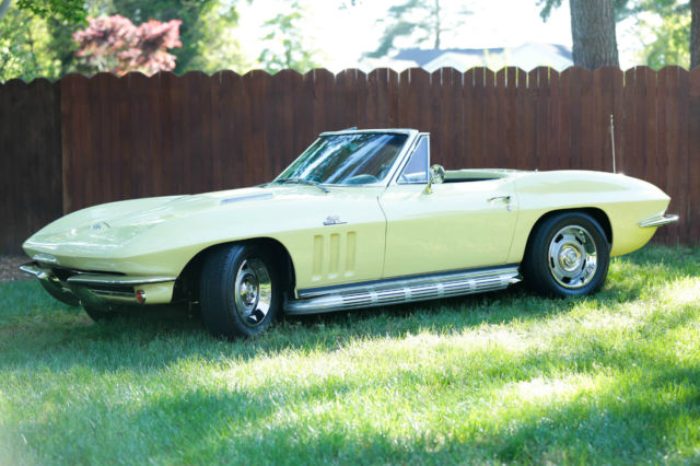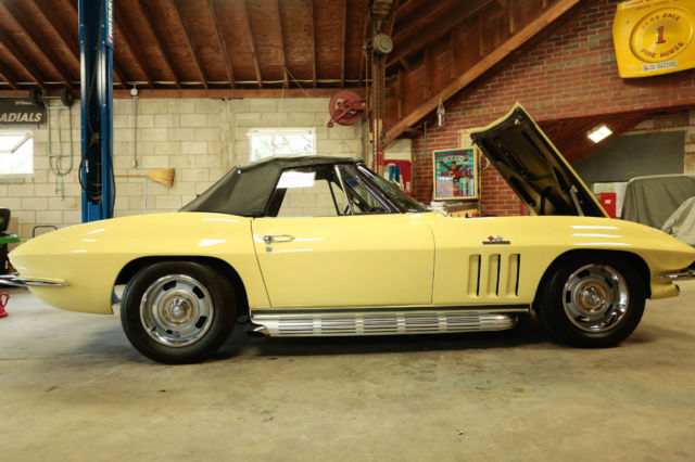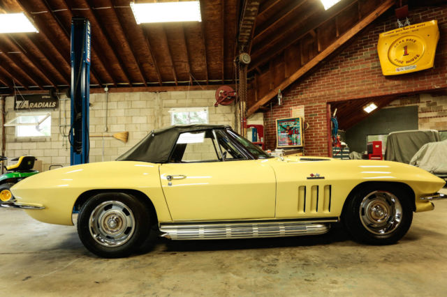 This fully optioned 1965 corvette is better than it was new off the factory floor. This car is a date code correct engine and transmission; meaning the engine and transmission are brand new. Not the True numbers matching corvette you were hoping to hear. I myself truly appreciate the rarity of seeing a car 50 plus years old having the original block casting, heads and transmission but lets face the facts. Do you really want to be using a drivetrain that old. This car revs and drives as if it were brand new becuase it basically is. This corvette has undergone a recent "Frame-Off Nut & Bolt Restoration" all the way down to new chevrolet corvette ralley wheels. While maintaing the factory look and appeal a few technological upgrades were added. A fullly electronic MSD system was professionally installed, MSD pro-billet Ignition distributor, MSD electronic ignition module, MSD coil, All MSD wires and harnesses with AC-Delco spark plugs. The installation of this MSD system while still maintaining factory appearance has drastically increased the ease of drivability in this car! The manual cable ignition from the key tumbler back no longer exists giving you 99.9% more reliability than it had before. To enhance the tuning a 750 CFM classic carburetor was instaled as well. This allowed us to correctly tune the car to run smoother and faster than original! To harness the power of this 396 Turbo Jet we installed a sport suspension and handling package including a posi-trac rear end with a 3.55 gear ratio. Now you can lay all the power the ground and achieve it without losing control. If you want the perfect 1965 Corvette Convertible that is 100% TURN KEY READY! This is the one that you should own. Best Of Luck! WILL SHIP WITHIN UNITED STATES. PLEASE CALL ADAM FOR ANY QUESTIONS REGARDING THE CAR AND/OR SHIPPING. 757-409-0425