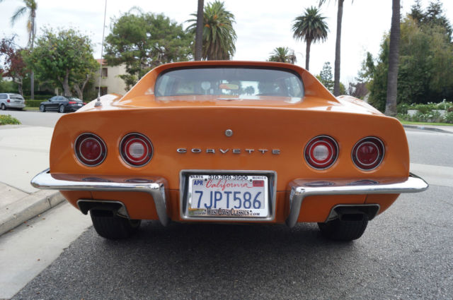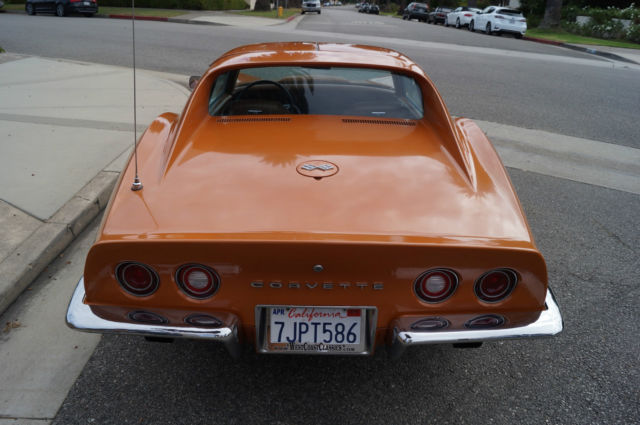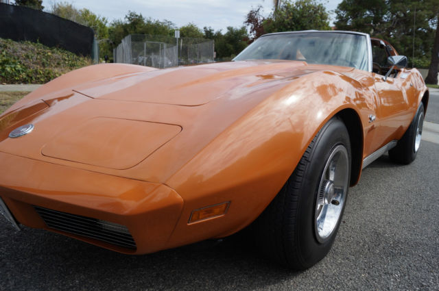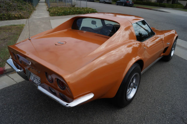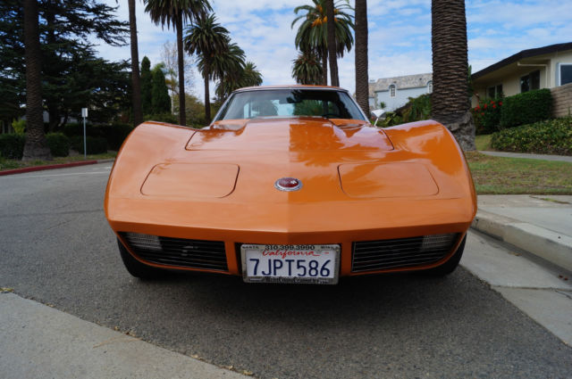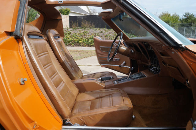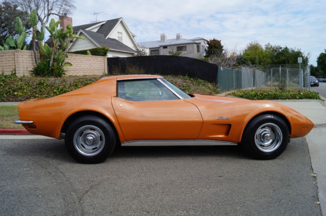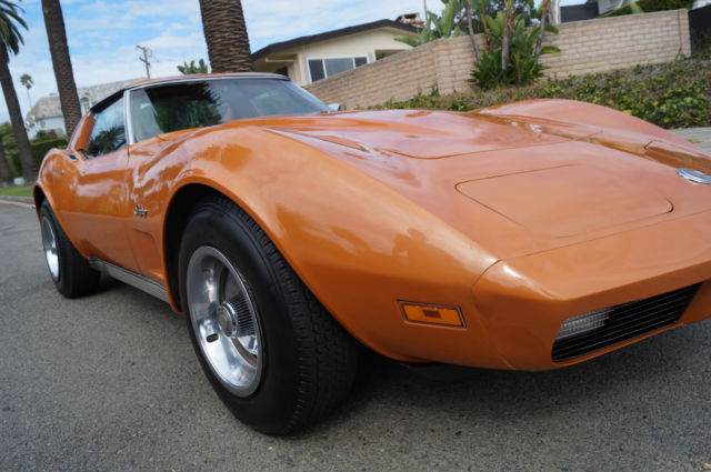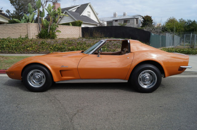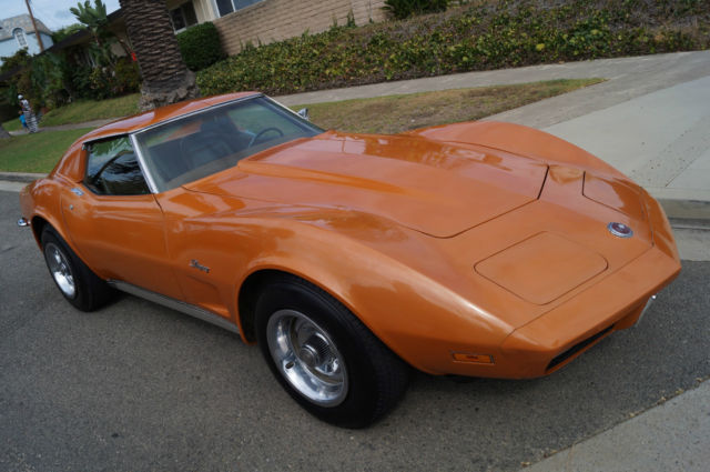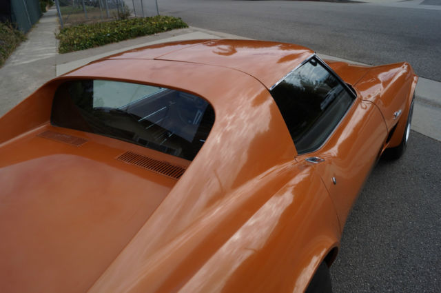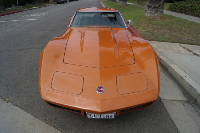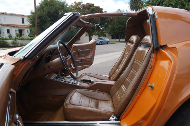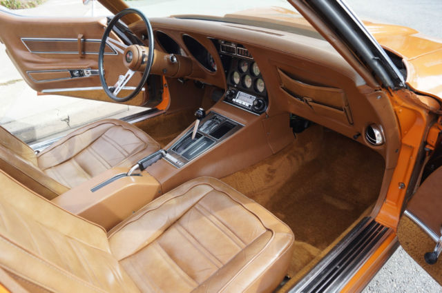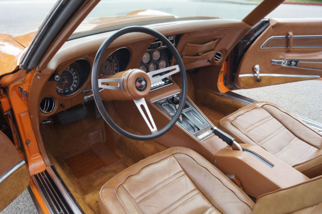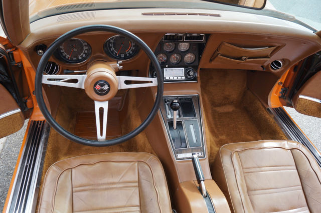 The cars original 'Orange' factory color repaint is very good and the original 'Mediun Saddle' leather interior and the trim is in absolutely exceptional condition throughout with virtually no signs of any wear. The car has the factory optional 4 Aluminum wheels ($428) and the car has obviously always been garaged with absolutely no signs or history of any accidents! All the options are working as they should including all gauges and lights and the AC. This is obviously one very low mileage example of this classic American sports car - a beautiful 1973 Chevrolet Corvette with only 51K original miles with an original leather interior and air conditioning and apart from one repaint in its original color, in virtually completely original and unmolested condition throughout! The engine purrs smoothly under the hood and the transmission shifts smoothly through all the gears - an absolute pleasure to drive without any of the older and generally much higher mileage Corvette typical shakes or rattles - a truly remarkable daily driver that will give any modern day sports car a run for its money