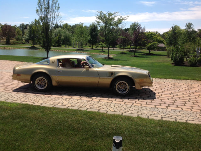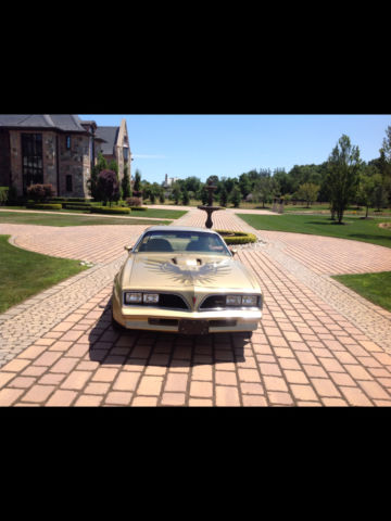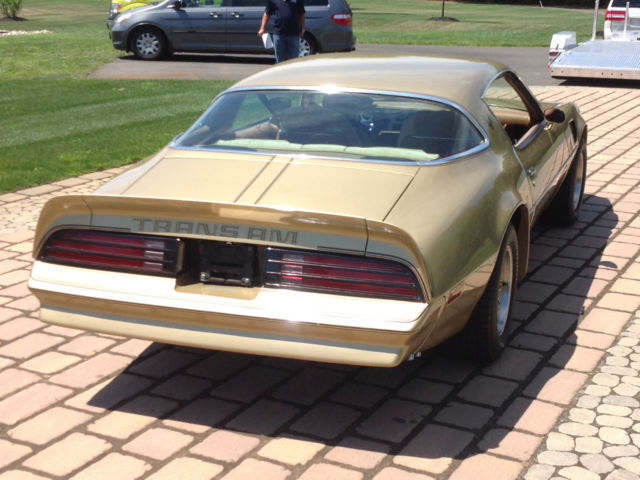1978 Pontiac Trans Am loaded with all the right options in mint condition. interior is all original in mint condition with never any repairs or smoking burns. The original driveline has been completely rebuilt to factory specifications. exterior is spectactular condition. WS4, WS6, Y72 factory option car. Looks great and runs as new. show ready. Car is fully documented from build sheet to original bill of sale, order sheet, which all will come with purchase. If you have any question please call Dennis 908-770-1575. Here is a list of its factory options: 1978 Pontiac Trans Am Solar Gold paint Carmel custom interior trim Carmel trim appointments Body side moldings Saf-T-trac differential Posi-traction Custom Air conditioing Custom colored seat belts carmel Console Cruise Control Electric rear window defroster Rally gauges with Tachometer Soft ray tinted glass Hood decal Lamp group luggage,glovebox,courtesy under dash Remote control sport mirrors Roof drip moldings Power windows Radio accommodation package Stowaway spare tire with inflater Rear deck spoiler Formular steering wheel Formula steering wheel Trans Am special performance package 6.6 Liter 4bbl V8 engine high performance Cast aluminum wheels 8 inch gold 225/70R 15 inch white letter tires Gold aluminum wheels Radiator, super cooling Custom velour trim group Camel buckets and rear seats Door handle ornamentation Pedal trim package Custom interior appointments Automatic transmission The complete drivetrain has been blue printed and rebuilt to factory specifications. Car looks, feels, sounds, and runs as new.