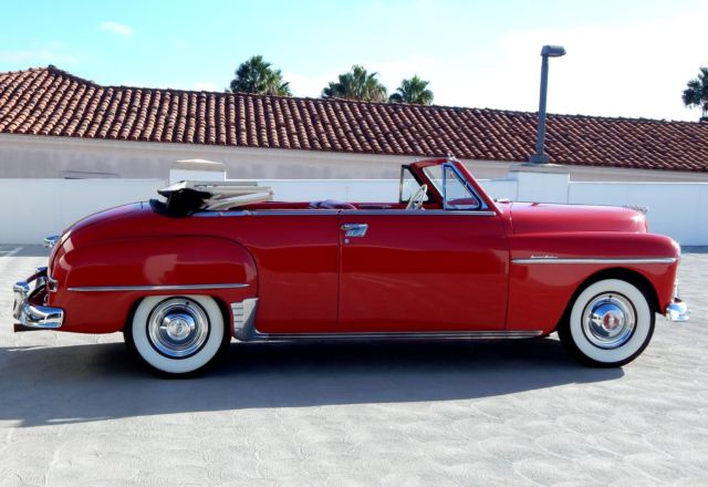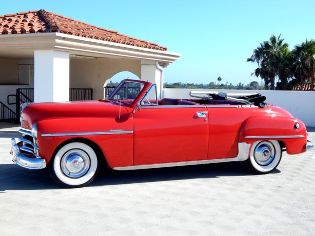 1950 Plymouth P20 Special Deluxe Convertible Previously Restored California Car This is a very nice Plymouth Special Deluxe Convertible that has been part of a large Southern California Auto Collection for the last 22 years. The car looks just as pictured in the listing and the photos were just taken earlier this week. The car was painted and it received a new interior and soft top around 11 years ago and the exterior chrome looks good. The car has the straight six engine with a 3-speed manual transmission and a power convertible top, heater, radio and white wall tires. The engine was previously replaced with a similar engine from a 1948 or 1948 Plymouth. The car has only been driven around 110 miles since 1993. The car can be viewed in the Newport Beach area. Please call (949)642-7447 for additional information or to set up a time to view the car. The buyer is responsible to pick the car from us in Southern California or to pay for it to shipped. However, we can assist the buyer with the shipping process. The car is now 65 years old so the true mileage is unknown and we are selling it "As-Is".
