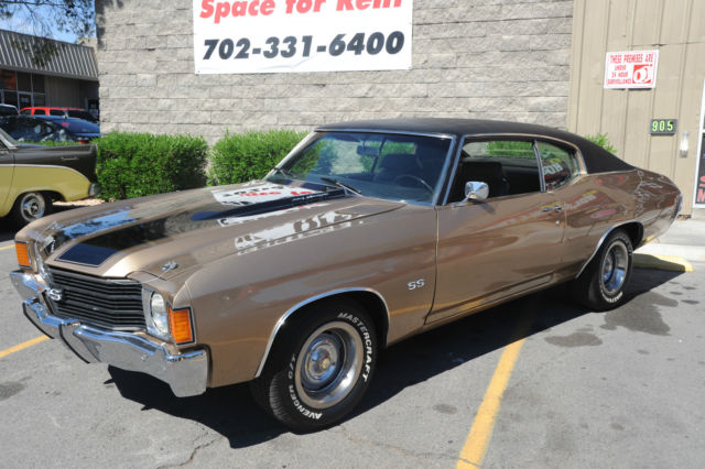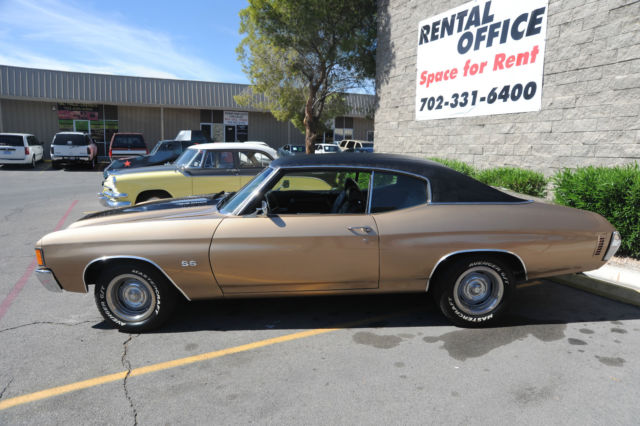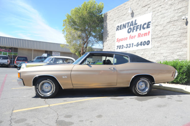 This is a very clean and straight 1972 Chevy Chevelle with 350 V8 motor with 4 Speed Tranny. I bought it from another dealer in the South who said it was a real SS but I can not vouch for that. I do know that I can not find any rust on the body. there is some very minor surface rust in the trunk. could use a rubber boot around the stick shift and cig lighter is missing.. It's an AC car with all the gear, but AC is not currently working, that will be for the next owner to figure out. Nice interior and headliner and vinyl top, paint looks good also.. it's ready to go AS IS, or spend a little more cash and you can make this a car real runner !!! PS - the odometer says just 97706 miles, but with any car this old, we must assume True Mileage Unknown. Please note, I am a boutique classic car dealer in Nevada, so any Nevada residents who purchase this car to register in Nevada will need to pay a 8.1 % Nevada sales tax and a $99 documentation fee... but I have taken this into consideration in the great-value pricing of this car.Come to Vegas to party and drive home an incredible vehicle that is quite a lot of class, fun and quality for the money ! Best, Steve in Las Vegas cell 213 500 8619http://www.hotrodcitylasvegas.com/?page_id=32FINANCING AVAILABLE Through JJ Best with just 20% down and upon approved credit.DISCLAIMER: All vehicles are USED and sold AS IS and WHERE IS. We encourage you to come to Las Vegas to inspect the vehicle yourself or arrange for a qualified mechanic to go over it for you. Because there is not any Refunds or Warranty expressed or implied. We have revealed all details to the best of our knowledge. We are not responsible for any defects not mentioned by our staff or in our advertising. Any and all repairs and hidden problems that occurred previously or later, insurance, taxes, registration, smog requirements, issues at your stateâs DMV and shipping are also the responsibility of the buyer. The Vehicles we sell are vintage and/or old school and a certain amount of knowledge of classic cars and auto mechanics is advised.These are not brand new turn-key vehicles so donât expect them to be perfect. Please note that no sales are final until full payment has been made and a sales contract has been signed by both parties.