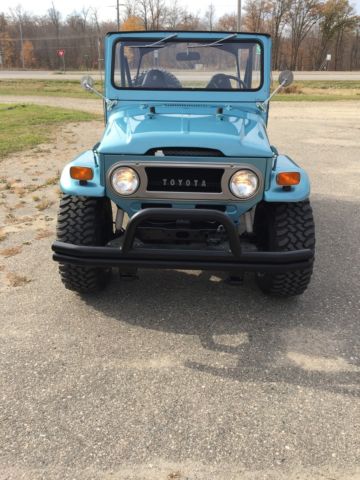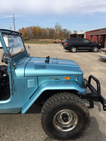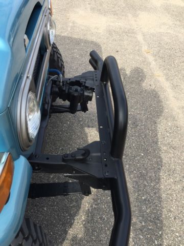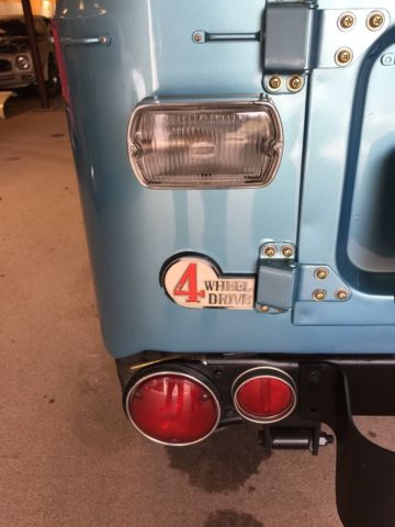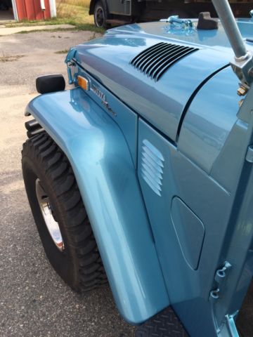 Paint is beautiful, tires are older (8+ years) with little to no use and like new. (We discussed that a smaller size tire would be better) long term. Horn works great, blinkers, lights, no scratches, mirrors are like new, carpet is in great shape. No rust whatsoever or close to any soft spots or body flaws. It's absolutely solid and true. Truck could use a current generation stereo deck if someone wanted higher end sound but other than that this vehicle is mint. Speakers and wiring are good. Please notice a few pictures have the original navy seats with the grey seat covers on them (They can be included in sale). The new seats are Corbeau with optional harness in black as you will notice. Corbeau seats have NOT been used other than for these photo's. Owner is 6'3" 235lbs and he fits perfect with seat size and configuration now. We can adjust if needed prior to delivery. Soft doors are included along with bimini top in the picture. Snaps are already installed for a top if desired. No soft or hard top included however. It never was used in rain or winter. This has been used minimally in sunny weather only. For sale locally in Minnesota so we reserve the right to end the auction early. Reserve is LOW and this truck will be a smart investment (no brainer) as well as a great sunny day driver. Our client is cutting a few of his cars loose so this is a great deal for a Land Cruiser buyer. Good client and he has ZERO room for it anymore in the garage and he says "gotta go". Please call me with Questions: Fat Lip Restorations in Detroit Lakes. Please feel free to contact me during working hours at the shop. We have a great name in the restoration industry and have the referrals to prove it. Our clients appreciate our attention to detail on our vehicles. We can also discuss delivery as we have that as an option along with anything else you need. We pride ourselves on obtaining your 10th deal with us not just the 1st one. Good luck on this beautiful and rare gem. Sincerely, John U. Owner Fat Lip Restoration 218-844-5331