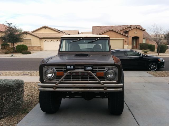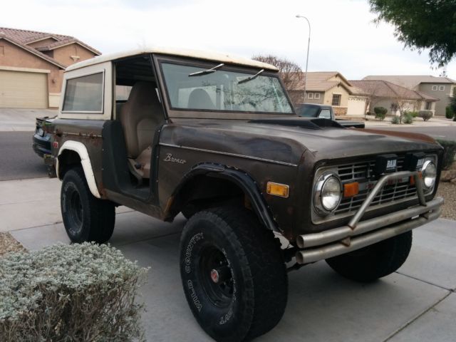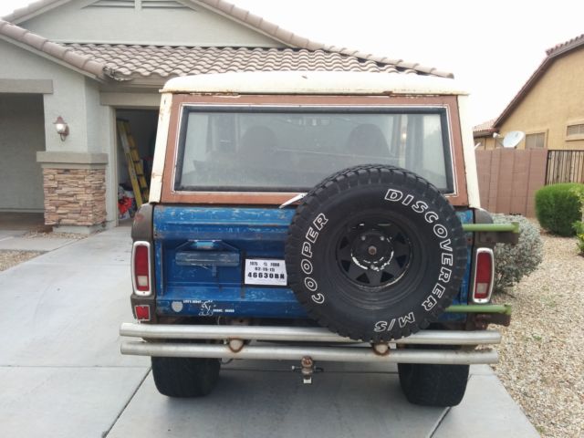 This bronco is featured on the promos and opening of the Velocity TV show Extreme Auto Hunters and was owned by Todd Jansonious the lead character of the show.This truck is a daily driver it runs, sounds, and drives great. As shown in the pictures the body work is rough, basically the quarters panels and front inner fenders need to be changed, others parts can be easily fixed. Will need a brake service. As the mechanics are top notch. The engine is a recently freshened up 80's era flat top 302 with early 69-70 351W heads. It has an early Ford 2 barrel carb, headers, and two 3/4" dual exhaust that sounds amazing. The transmission is a newly rebuilt C4 with heavy duty internal parts. 4WD works. Dana 44. Suspension springs and shocks are nearly new. New radius arm and new front axle C-Bushings to correct the lift. Tires evenly worn, good for a while 35x12.5-15. Superduty XLT front seats. Rear seat. The top is in very good condition. Original complete doors in great condition. Roll cage. Front and back custom bumper. Lightning works. The box has been sheetfed in solid and bedlinered, sealed and no holes. Custom hood. Front windshield frame folds. Interior in great shape. Fiberglass door inserts. Clean title. Buyer pays for shipping. Will sell it for $5500 without the doors and top. Extreme Auto Hunters Promo Video https://youtu.be/ehr99OH9Rp8 Great for a project or as an off road truck.
