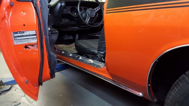 THE BODY WAS COMPLETELY DISASSEMBLED AND SANDED TO BARE METAL THE BODY AND FLOORS WERE NOT VERY BAD JUST MOSTLY SURFACE RUST THE FRAMES ARE ALL SOLID FRONT TO BACK BODY WAS GIVEN EPOXY PRIMER AND ITS FIRST REPAINT OF EV2 ORANGE.ALL TRIM AND SEALS WERE REMOVED AND POLISHED OR REPLACED-JUST BEAUTIFUL! THE ORIGINAL MOTOR AND TRANS WERE REMOVED AND REBUILT TO STOCK GAS TANK IS NEW AND THE ORIGINAL THERMOQUAD CARBURETOR WAS REPLACED BY AN EDELBROCK 1406 -ORIG CARB IS INCLUDED.THIS CAR RUNS STRONG THROUGH THE NEW DUAL EXHAUST WITH FACTORY TIPS. TRANSMISSION SHIFTS SMOOTH AND CAR GOES DOWN THE ROAD STRAIGHT AND TRUE.THE 323 LIMITED SLIP POSI HELPS AND THE BRAKES WERE GONE THROUGH AND ARE HIGH AND TIGHT WITH MANY NEW METAL LINES.THE FRONT END IS TIGHT AND HAS AIR SHOCKS IN THE REAR.HAS NEW COOPER COBRA TIRES ON AMERICAN RACING TORQUE THRUST WHEELS -SHES A REAL HEAD TURNER! INTERIOR WAS GONE THROUGH AS WELL WITH NEW LEGIONDARY SEATS HEADLINER CARPET AND DASH.ALL WINDOWS AND DOORS ARE NICE AND WORK AS THEY SHOULD GUAGES ALL WORK BUT THE RADIO IS NOT HOOKED UP AC IS ALL THERE AND WORKED BUT NEEDS A CHARGE -CAR IS ALOT OF FUN TO DRIVE I HAVE DESCRIBED THIS BEAUTY THE BEST I CAN BUT PROBABLY MISSED SOME DETAILS-PLEASE ASK ALL QUESTIONS BEFORE BIDDING AS YOUR BID IS TO BUY...THIS CAR IS A VERY NICE DRIVER AND NO EXPENSE WAS SPARED TO RESTORE HER TO HER ORIGINAL BEAUTY! JUST KEEP IN MIND SHE IS 43 YEARS OLD LADYS AND GENTS! ANY BIDDER WITHOUT AT LEAST 5 FEEDBACK PLEASE MESSAGE ME BEFORE BIDDING OR YOU MAY BE CANCELLED-THIS AUCTION MAY END AT ANY TIME! THANKS FOR YOUR INTEREST!