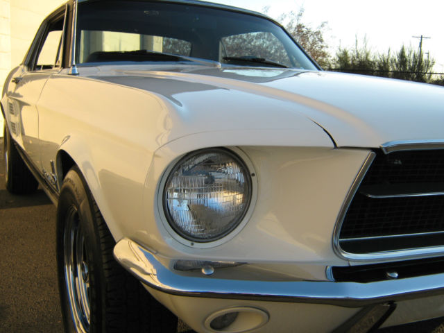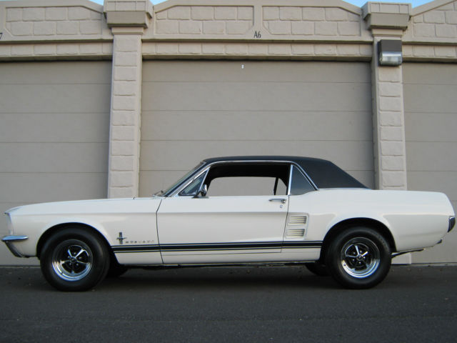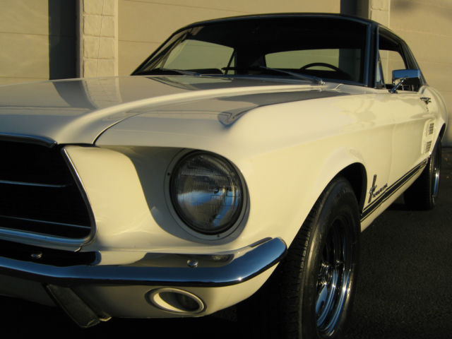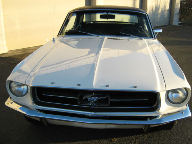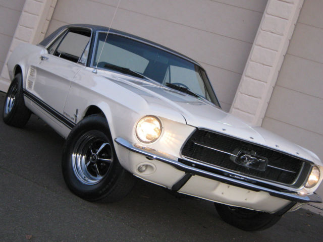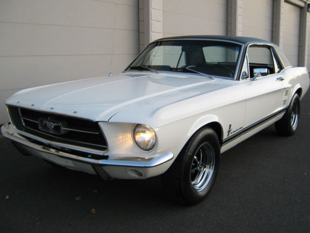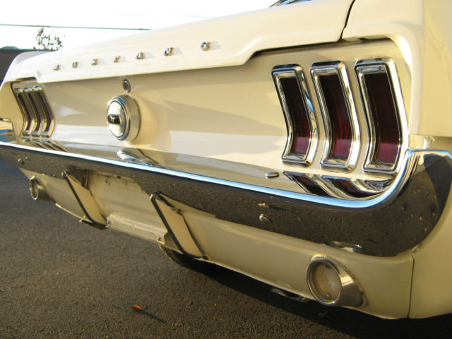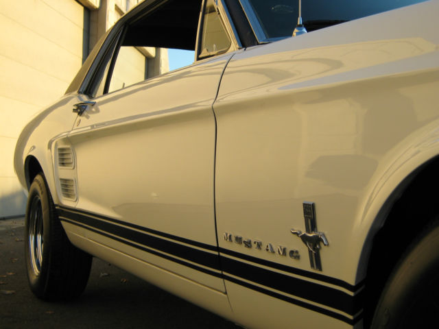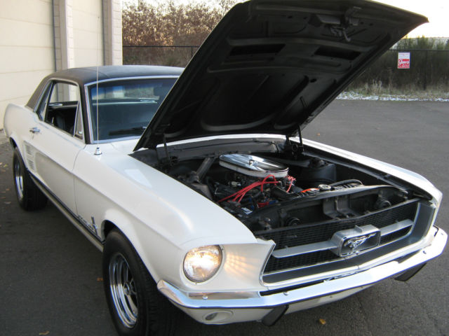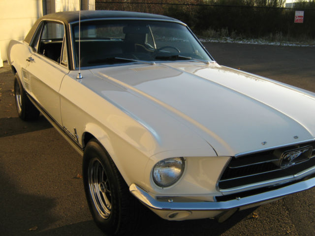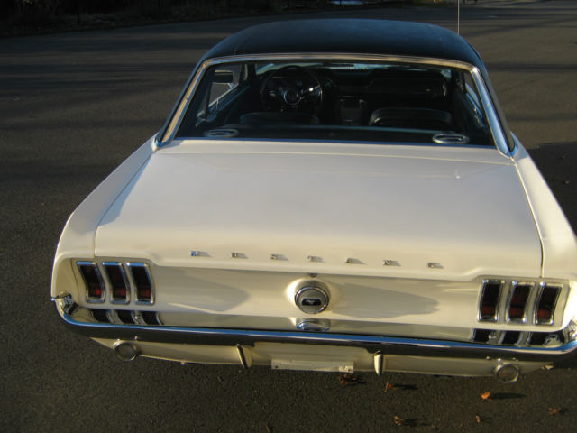 Wow.Beautiful and Stunning looking 1967 Ford Mustang in Fantastic Condition-------New 5.000 dollar Base Coat Clear Coat Paint job that was wet sanded and buffed to a Mirror like Finish--------Painted in Colonial White with PPG Ditzler Paint--------Black Vinyl Top also in Fantastic Condition with only few minor Flaws as seen in Pictures---------The Body was 99 % rust free and very straight and clean before the paint job was applied-----------Gaps on Doors,Hood and Trunk are excellent and everything closes nice and tight---------Glass is in great Condition all the Way around---------The Engine is a 289 V-8 Engine that runs very strong with lots of Power and is slightly modified with Edelbrock Aluminum Intake and 4 Barrel Edelbrock Carb.---------Also newer Valve Covers,Air Cleaner and 8 mm Performance Plug wires where installed---------Transmission is a 3 Speed Automatic that shifts great without any problems----------This Vehicle was garaged most of its Life and is pretty much all original without any Modification on Body or Interior---------New Front and Rear Bumper--------New Dash--------The Black Interior is in Fantastic Condition and looks to be all Original to me,besides from the Brand new Dash---------Also recently installed was a brand new Gas Tank with Sending Unit-------a 2 1/2 inch Magna Flow Exhaust all the Way through and Grab-a-Track Rear Leaf Springs----------Front and Rear Tires are 215/70/14 Firestones with about 80 % Tread left and mounted on Magnum 500 Steel Rims--------The Vehicle has Power Steering that works great------All the Lights and Blinkers work as they should--------This Stunning looking Mustang can be driven to any Car Show and will be noticed with big Thumbs up every time.please look at all the Pictures at close up as they are also part of the Description------This 1967 Mustang is pretty fast and runs and drives excellent----------Vehicle will be sold to the best offer that comes in and all reasonable offers will be considered---------Car has clean and clear Title to go with and will be sold as is where is without any Warranty or Promises---------1.000 Dollars non refundable deposit is due within 48 Hours after Auction End and the rest of Balance is due within 3-4 Days after auction End payable only trough Bank Transfer,Cashiers Check or Cash in Person.I prefer you to pick up your car in person,but if for some reason that would not work for you,i will be glad to refer you a reliable Transport company for a reasonable Price.I am glad to assist you in any needs possible to make this Transaction as smooth as it can be for both of us.