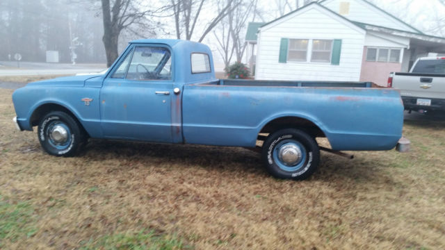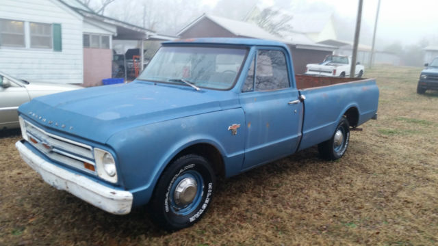 1967 C-10 LWB 250-6 CYL. 3-SPEED ON THE COLUMB. DAILY DRIVER. I'M THE SECOND OWNER, ALL ORIG. BARN FIND... EVERYTHING WORK'S, IT RUN'S GREAT, DRIVE'S GREAT. ALL NEW HEAT AND DEFROST DUCTWORK AND CONTROL PANEL SWITCH. ALL NEW STOP AND PARKING LT LENSES, CARPET, DASH PAD, DOOR HANDLE'S, TOO MUCH TO LIST...GOOD GLASS. NO CRACK'S, NEW TIRE'S 0 MILES. HAVE ALL NEW GLASS AND DOOR SEAL'S THAT WILL GO WITH IT..PRETTY SOLID OLD TRUCK... DOES'NT NEED MUCH TO BE NICE....COVERED SOME RUST IN BED WITH PLYWOOD, BUT SOLID...IT HAS A SML. DENT IN RT. FRONT FENDER SEE PICS... I RESERVE THE RIGHT TO END ANY BID AT ANY TIME, AS IT'S FOR SALE LOCALLY.. I'VE BEEN AS HONEST AS I CAN.. BID ACCORDINGLY.. THANK'S FOR LOOKING..I LIVE IN GA. AND YES I DO HAVE A CLEAN GEOGIA TITLE IN HAND...