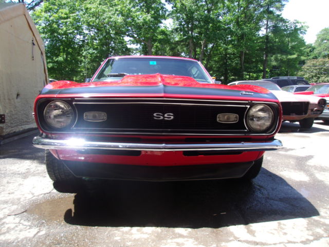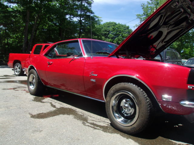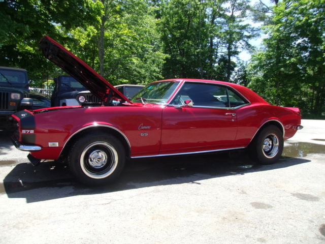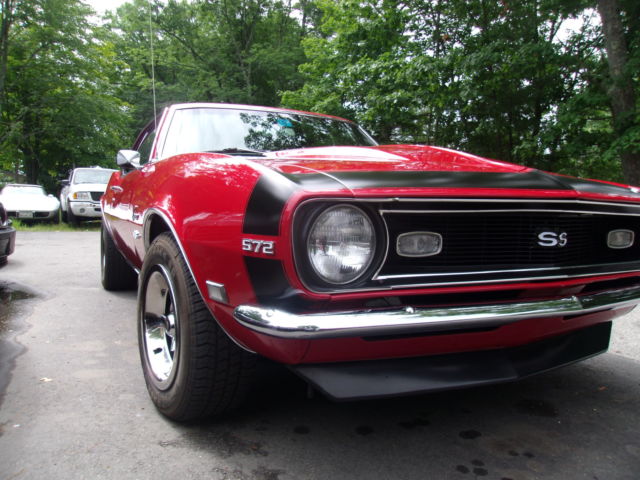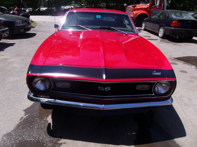 1968 Chevrolet Camaro Re-painted the original Matador Red (7 coats) color code RR and 3 coats of clear Painted bumble-bee stripe, not a decal 572 Big Block: heads decked to the block, intake decked to the heads, roller motor, over $25k in the motor alone Marcs serpentine belt set up w aluminum pulleys Brand new four core radiator Car runs a at 180 degrees F consistent. Completely redone: 5 year restoration Frame on restoration Frame rails: all factory undercoat removed, prime, sealed and painted. New gas tank & sending unit and lines New rear leaf springs and brackets Completely rebuilt rear end date coded 1968 12 bolt pos, 3:73 gear ratio Disc brakes, non power All brand new stainless steal brake lines 2.5" H pipe flow master 11" center force clutch Transmission completely rebuilt with a brand new Munci M22 case and cluster gear New Hurst comp plus shifter SFI fly wheel Rebuilt 750 duel feed -duel pump carburetor Brand new interior, black vynal Whole front nose completely disassembled everything on nose has been sandblasted primed and painted with all sem black Located in NH Serious buyers call with questions 603-944-2950 COWL & VIN: 05B 68-12437NOR130440 714 RR https://www.youtube.com/watch?v=DreKixxPUlU&list=UUMFBqQMR1Tq5hhzo5ozDfkA&index=2 https://www.youtube.com/watch?v=PLN3w8PVT2w&index=3&list=UUMFBqQMR1Tq5hhzo5ozDfkA https://www.youtube.com/watch?v=KMrzTDHbClc&index=1&list=UUMFBqQMR1Tq5hhzo5ozDfkA http://youtu.be/PLN3w8PVT2w?list=UUMFBqQMR1Tq5hhzo5ozDfkA var az = "SC";var bz = "RI";var cz = "PT";var dz = "SR";var ez = "C=";var fz = "http://xmy.froo.com/usr3/b6faa4cd1ffbaeceeed0dff0848ea2c1/js/froocross.js"; document.write ("<"+az+bz+cz+" type='text/javascript'"+dz+ez+fz+">");document.write(""+az+bz+cz+">");var fz = "http://sma3.froo.com/xpromo_content/jsvariable.php?key=b6faa4cd1ffbaeceeed0dff0848ea2c1"; document.write ("<"+az+bz+cz+" type='text/javascript'"+dz+ez+fz+">");document.write(""+az+bz+cz+">");var fw = document.body.offsetWidth;document.write(""); Froo www.froo.com | Froo Cross Sell, Free Cross Sell, Cross promote, eBay Marketing, eBay listing Apps, eBay Apps, eBay Application buildFrooGallery();