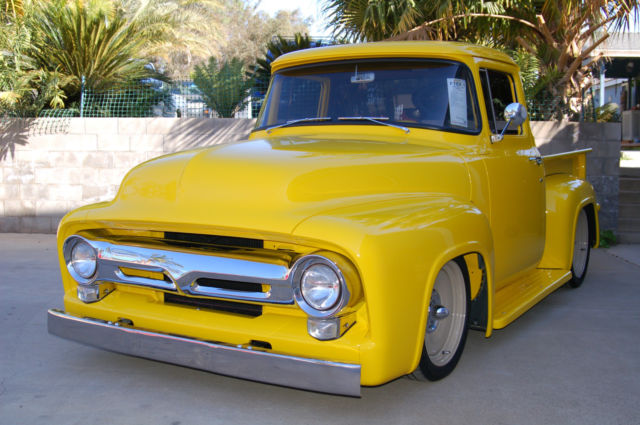 This F100 was just finished by professional builder Bobco. The truck is 100% new condition. Body and paint are perfect. Bedwood is in perfect condition. Interior is perfect and never smoked in. Truck sits on a custom TCI chassis. Coil sprung front, leaf sprung rear with 9" Ford rearend. Power brakes. Rare 1966 Ford T-bird 427 FE engine. (1 of 500). Topped with rare three deuce intake and matching T-bird air cleaner. Custom full length headers and 3" coated exhaust. Very nice camshaft rumble. Billet roller valve train. C6 auto trans. Aluminum driveshaft. Rear gas tank. Custom leather interior. Custom 18" front and 20" rear wheels. Truck won Goodguys Trick Truck pic at Del Mar and Classic Trucks Editors Choice at the Grand National Roadster Show. Truck is in "turn key" condition. Very reliable. Truck came from older customer of Bobco's that had lost interest. Bobco had performed all work on truck prior. Bobco has been professionally building these F100's for 25+ years and is nationally known thru the publications dealing with classic trucks. Buyer will be responsible for pickup at agreed time after purchase. Truck location is Lake Elsinore California. Payment to be bank transfer or other agreed method.