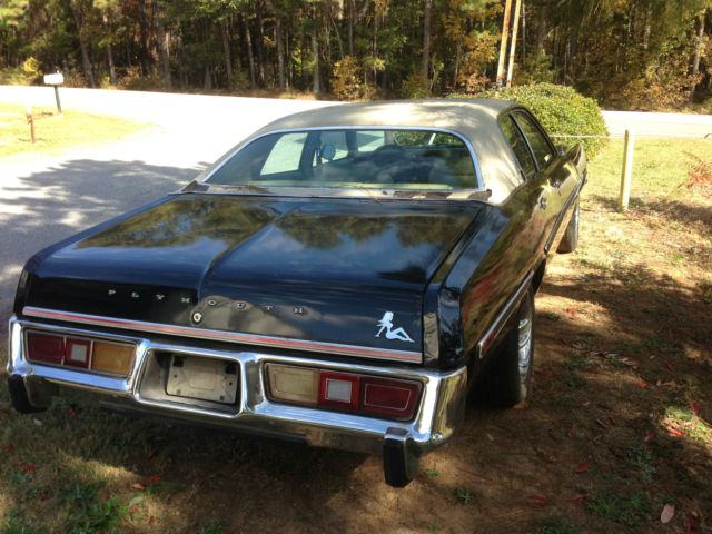 1977 PLYMOUTH FURY SEDAN THIS FURY WOULD MAKE A GREAT POLICE CAR CLONE , WITH ORIGINAL POLICE PACKAGE CARS GETTING HARDER AND HARDER TO FIND THIS CIVILIAN CARS MAKE A CHEAPER ALTERNATIVE . The Fury runs and drives , but has been sitting for over a year and would need a tune up etc a general going over , brakes etc . Interior is in original shape , drivers seat shows normal wear and tear for age , dash pad has a couple cracks ,headliner is good , Vinyl top is peeling and will need to be removed , couple minor spots of rust on back corners where vinyl top meets the body . Speedo is showing 32905 i would assume it has 132905 , engine runs well , has a leaking right hand valve cover and a small exhaust leak , transmission shifts fine . Previous owner fitted the newer style chrome rims , two will not hold air over a period of time so i would bring a couple rollers to haul it home . Also included in the auction is a working correct 52 inch Aerodynic lightbar , and four correct slotted dog dish hubcaps . For additional pictures of the Fury : s6.photobucket.com/user/CornDog05/library/Black%20Fury?sort=3&page=2&_suid=141751419484005984621243551373 Fury would make a easy and cheap Police car clone ie: Dukes Of Hazzard , Tj Hooker ,Sheriff Lobo etc . Please only serious bidders , $500.00 Deposit due at auctions end balance in 7 days , pickup in 14 days . Any questions please ask before auction ends , thanks for looking .