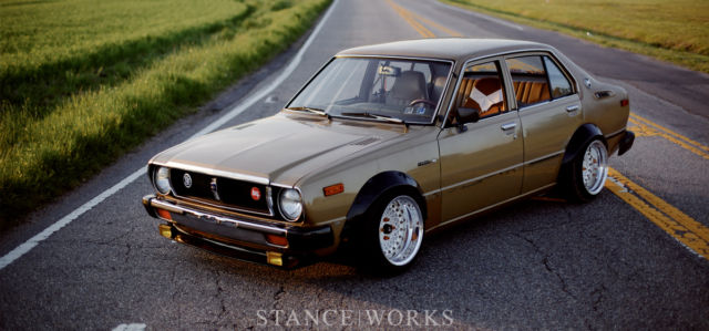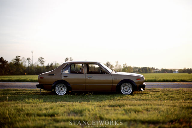1979 Toyota Corolla Deluxe 97,000 original miles 1.6L 2TC motor 3-speed automatic I've taken it on several road trips to car shows up and down the east coast. The longest being a 1200 mile round trip to Georgia. The car has never given me any issues and is turn key ready to drive Everything on the car works as it should besides the AC The whole AC system is in tact but needs a charge All the parts were purchased new and have about 5,000 miles on them Exterior is in great condition for the age The paint is still nice and shiny on most of the car Some dings here and there Some surface rust on the rear of the car Interior is in good condition as well The dash does have some cracks and the drivers seat is pretty worn Suspension: Custom front AE86 short stroke coilover and brake conversion Techno Toy Tuning weld-on coilover kit Techno Toy Tuning camber plates Techno Toy Tuning roll center adjusters KYB AGX adjustable struts front and rear New AE86 Corolla calipers Brembo rotors Hawk pads 4" lowering blocks New wheel studs Exterior Wide ZG fender flares TRD style front spoiler Fog lights Tucked front and rear bumpers Wheels Epsilon/Southern Ways mesh wheels Freshly rebuilt and polished Wheels and tires have about 5,000 miles on them since the rebuild 15x8 -38 (175/55) 15x10 -25 (195/50) 25mm bolt on spacers Random stuff MSD Blaster SS coil Wolo Tequila horns