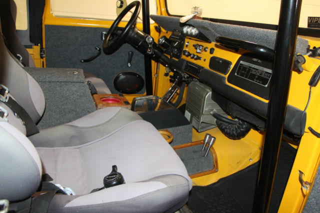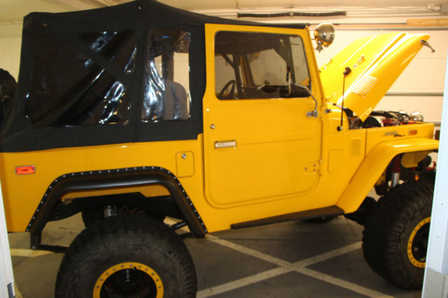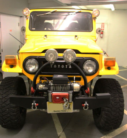 Toyota:1973 FJ-40 Landcruiser Excellent Condition Runs Great Excellent Physical Condition 66767 Miles on odometer Yellow Exterior Black Interior Power Brakes Non-Smoking, No Pets Extraordinary appearance Restored to an excellent mechanical condition 350ci Chevy Engine Holley 4 Barrel Carburetor B&M Shifter Mickey Thompson Baja Lock wheels on car Mickey Thompson Baja MTZ tires Custom interior fitments, see pix Netami Seating and Harness Bulldog Winch Undercarriage Lighting Kit No accidents No issues SPECS: Model FJ40 Manufacturer Toyota/TLC Years Avail. 1960-1983 Body Style 2-Door "Jeep" Style Drivetrain Front Engine, 4x4 Engine V8. 350ci, 5.7 Liter Fuel System Holley Four Barrel Carbureted Horsepower N/A Torque NA Transmission 3-Speed Automatic with B&M Shiter Wheelbase 90 in. Length 152.4 in. Width 65.6 in. Height 76.8 in. Track, F/R 55.3/55.1 in. Towing Cap. 3000 lbs. Suspension Semi-Ellip Leaf Spr Brakes, F/R Hydraulic Drums Curb Weight 3263 lbs. Clearance 8.3 in. Fuel Capacity 18.5 -> 22 gal. MPG Estimate 11/16 The FJ starts and runs without fault This vehicle looks amazing, runs and sounds incredible This is the FJ you've been holding out for, it's here, it's now The paint work is exceptional, it gathers attention everywhere it is Payment is by wire transfer By all means, please have your mechanic inspect this vehicle This FJ can be driven anywhere or you may have delivery arranged with the carrier of your choice There is no warranty, it's a well maintained low mileage 1973 vehicle with no issues. Terms: Inspection and full payment is expected within 48 hours Payment by bank transfer or certified bank check Pickup or transport within 1 week after deposited funds have cleared Check out my other items !