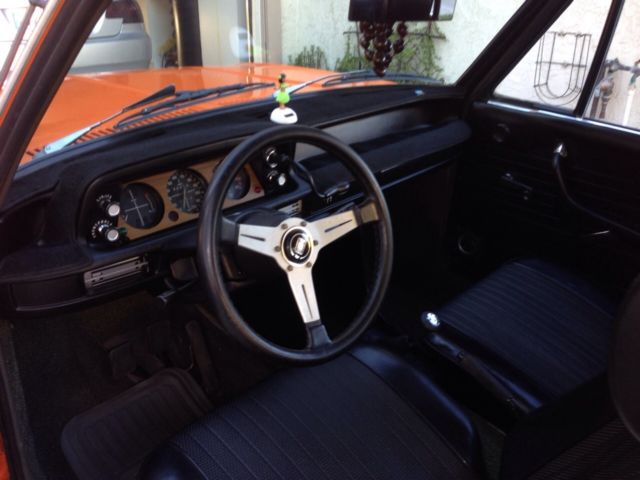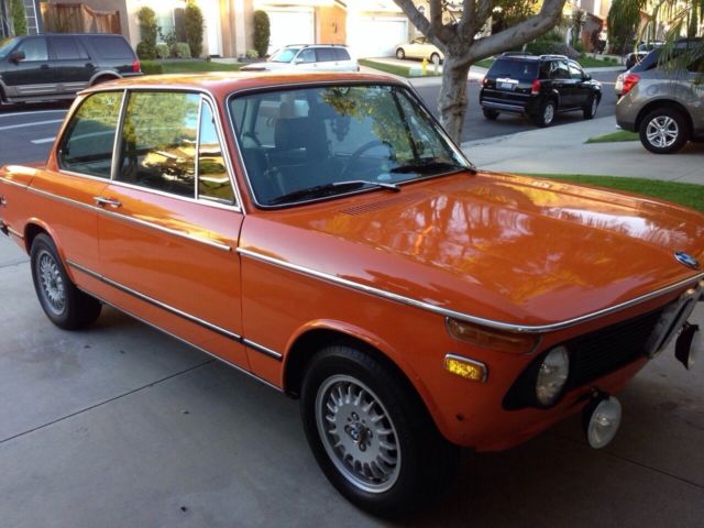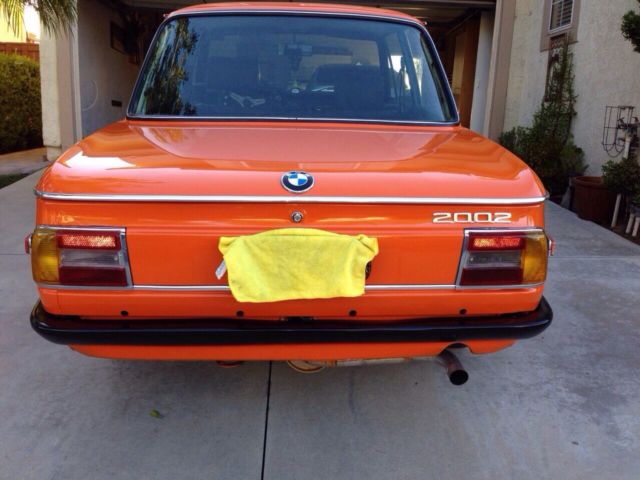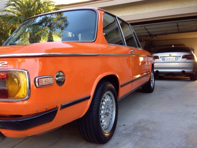 This is a 1974 2002 repainted in it's original color of inka orange. This car must have spent most of it's life in dry weather because it is practically rust free! It runs very strong and ready to go to be a daily driver. I've owned this car for 3 years now and has probably driven no more than a thousand miles. This car is garage kept the whole time i've owned it. Below are more details I could tell you about the car but if you have any other questions or would like to see more pictures please email me and I will try to answer your questions the best I could from what I know about the car. Brand new starter, new coils, new fuel pump, new door brakes, new locking gas cap, new shock tower bearings, new stainless brake hoses. I have replaced the gaskets on the door handles and side mirror, the tail light seal, driver side door seal and trunk seal. Brand new shift knob and dash cover. Period correct spare tire wheel, jack and lug nut wrench. Nardi steering wheel. Replaced the clutch slave and master cylinders,selector rod, propeller shaft coupling, alternator mount bushings, shift tower insulation, flex disc for driveshaft, header just recently. Michelin tires with less than 300 miles on them. I also have 2 seatbelt extensions. I have all the receipts of everything I have done on this car. The car has no AC and the odometer does not work so I couldn't tell you the exact mileage but it has stopped at 86,418. Local buyers or bidders are welcome to check out the car and I assure you you will not be wasting your time. Just email me to set up an appoinment.