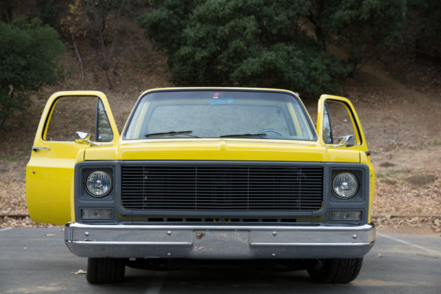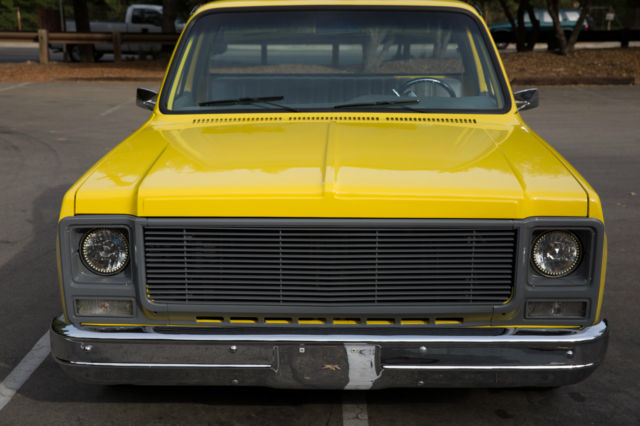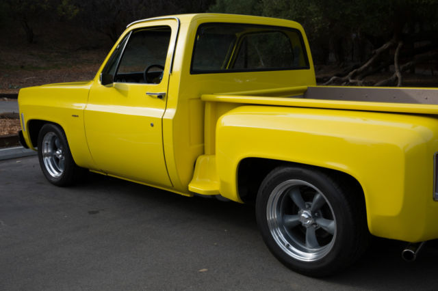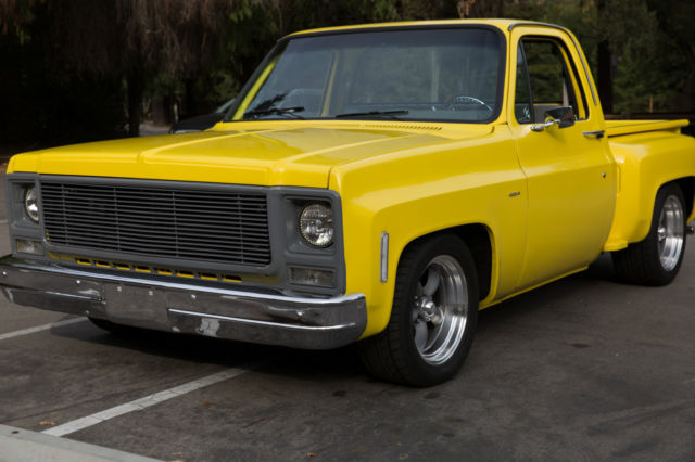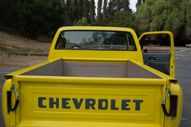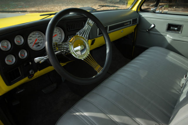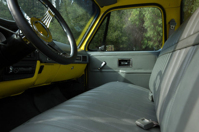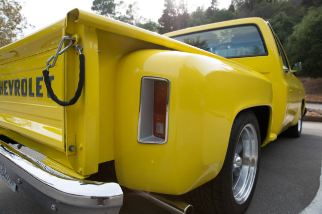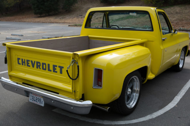 Original 454 Big Block, Factory AC, Sidestep C-10, w/Scottsdale Trim - and the original options list still in the glove box. This was a rare beast to begin with and has been updated and upgraded correctly. The Sound and Look of This Truck is Stunning. I've owned many C-10's, and none have gotten the attention this one demands. 454 Comp hydraulic cam, performance intake, Quickfuel 750cfm double pumper Carb, Holley HiTek aircleaner. Turbo 400 Trans w/beefed up internals, 12 bolt rear w/3.55 gears. Custom Straight Tube, Coated Headers leading out to dual, rear-side mount exhaust (you couldn't tune a better choir of exhaust sounds; it rumbles, spits and burbles, then idles steady) Custom Grey Painted Grill and Tailgate Lettering (to match wheels). LED Headlights (controlled by aux switch). Spotless/Straight Front and Rear Chrome Bumpers. New Mirrors. Power Steering. Power Brakes (front discs). New Master, New Lines. Factory AC w/New Compressor, Condenser, Drier, Core, Switches, Actuators, Relays, Hoses, Vents, etc. Heavy Duty Four Row Radiator. Dual Gas Tanks. Lowered Front and Rear w/Adjust Shocks. Oak Wood Bed w/liner on the walls (so you can use it if you want to). Brand New 18x10 Rear, 17x8 Front American Racing Wheels wrapped in Nitto Tires. Interior Completely re-done w/AutoMeter Ultralite II Gauges in a Thunder Road Cluster, New Dash, New Door Panels, Trim and Hardware, Billet Split Grip Steering Wheel, New Bench, Loyd's Matts, Bluetooth, Sirius, CD Player (w/USB input) Sony head unit, Amp, Two Boxes Behind Bench, Door Speakers. Handsfree (microphone installed in cabin). It Bumps. It Blasts. Its clean.