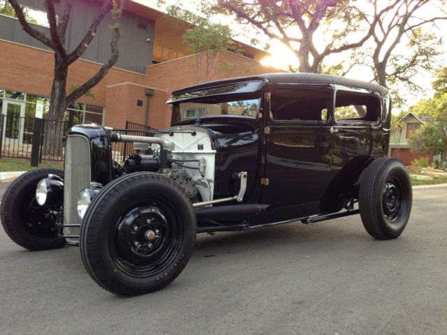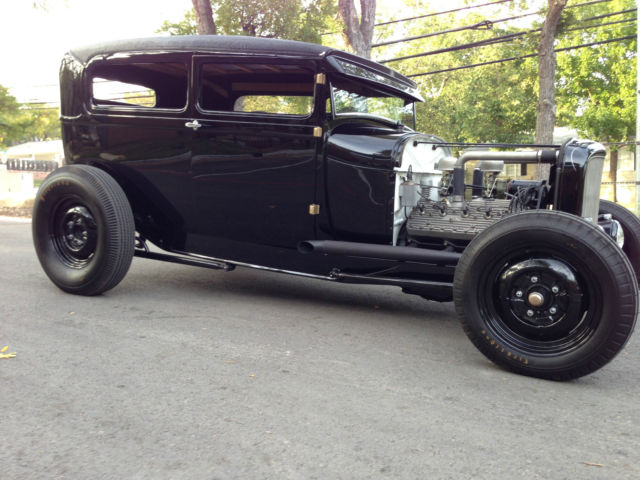 freshly built 1928 Ford Model-A sedan on 1932 Frame w/ 1949 Mercury Flathead V8. Very traditional build with period correct speed parts. Flathead starts right up and runs strong. I have been into traditional hot rods for a long time and this is a very well built and well assembled piece of American History. I have a growing family which means my hot rod passion is being put on hold so that I can focus on spending time with my little man. I will assist with domestic or international shipping. The list... chopped 6" reproduction '32 Ford Frame '32 heavy front axle '32 grill shell aluminum insert on '32 grill shell '32 aluminum radiator Guide 682C headlights 1940 Ford wheels Ford F100 front brakes '32 Ford front split wishbones T-5 transmission (pops out of 1st gear and needs rebuild) custom built & freshly upholstered bench seat reproduction wood bows vinyl top 1940 Chevrolet tail lights 1930 ford split wishbones on the rear 8" ford rear end from a Grenada modern wiring harness Stewart Warner gauges new optima battery (11/2014) inverted Model T galvanized gas tan new firestone tires '50 Mercury Flathead ported intake runners 4" stroke crank Iskendarian 88 camshaft Johnson adjustable lifters Iskendarian valve sprinks early 1939-1948 Edelbrock finned aluminum cylinder heads vey rare Navarro race model intake manifold (2) fully rebuilt Stromberg 97 carbs rebuilt vintage Mallory distributor rebuilt generator new fuel pump with pressure regulator gauge 1936 Ford Torque Tub Exhaust custom built bolt in exhaust baffles (installed in videos of motor running) new fuel sending unit