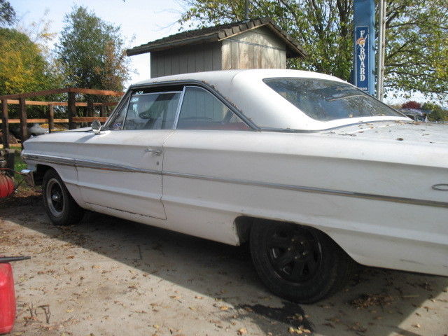 1964 Ford Galaxie Fastback 500 390 C6 according to the vin it is a 352 car but motor has been changed casting number is C6ME-A so it is a 390 or a 428PI (doubtful) had a 4BBL cast iron intake which I swapped out for the aluminum one. Motor was Freshened and re-gasketed before we got it. Trans works well Brakes are ready to go and work well front and rear suspension is tight. Clear CA Salvage Title On NON-OP All good tinted glass windows roll up and down trunk full of tons of spare parts (steering column, dash, engine parts, etc.) Needs one side exhaust hooked up shown in pics (has duals all the way to the back). I have both black plates if sold in CA they will go with car. Small rust spot in forward corner of passenger floor other than that rock solid floors frame trunk and body Needs interior updated but is all there except carpet Has B/M shifter Front wheels do NOT come with car but will come with good rollers This is a 50 Year Old car that will need finishing and is sold without any warranty expressed or implied and is sold as is/where is I have tried to give an accurate description but as with anything some details may be missed SO PLEASE ASK ALL QUESTIONS BEFORE BIDDING OR MAKING OFFERS. Shipping is buyers responsibility We will help in any reasonable way and of course it can be picked up here I can even deliver in NOR CAL for fair fee depending on distance Car is for sale locally so I reserve the right to end the auction early all legit offers will be respected Feel free to ask all questions This is my son's car he is selling it for college money and we will be selling my other Son's Factory 70 351 Cleveland 4speed Mustang Coupe shortly also that is the last picture this ad is ONLY for the Galaxie Thanks for Looking
