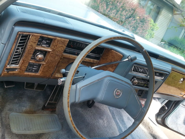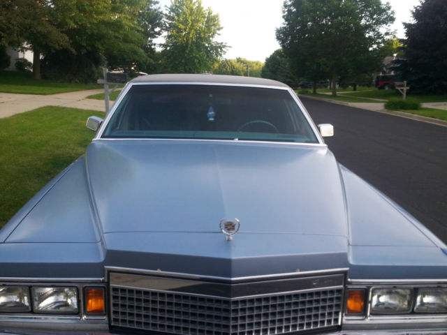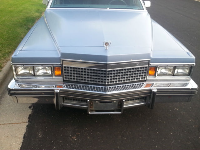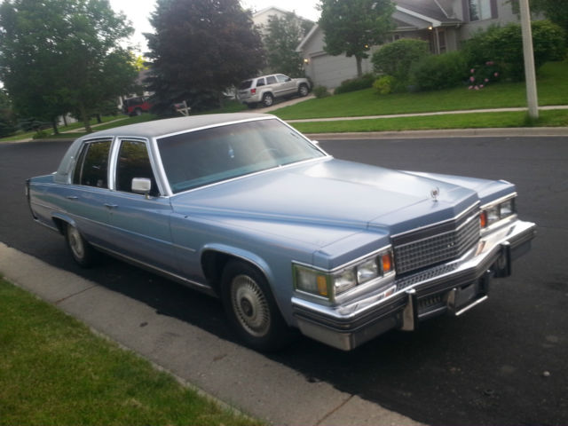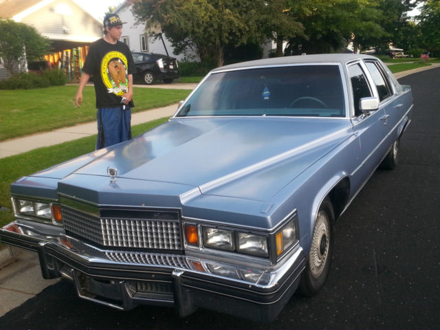 With no covered storage for the winter, we regretfully are selling our baby! I inherited this car beginning of summer (July 2014) and we've had an absolute blast driving this classic cruiser. Low miles at only 82k now, this baby blue metallic all ORIGINAL 1979 FLEETWOOD BROUGHAM CADILLAC is a dream! To the best of my knowledge we are the 2nd owner of this beautiful vehicle! Velour baby blue matching interior, premiere vinyl roof, automatic windows, doors, cruise control, floor control bright lights, tint, both original steel spoke rims (inside trunk see picture in listing here we have all 4 and they are in excellent condition!) and upgraded hub capped aluminum rims (note one small portion is mia on one), newer tires, huge trunk space with spare, am/fm radio with 8 track, all the premium features this is the elite broughman series the top of the line Cadillac of the day! There is minor wear and tear from age, and some dents to back trunk from minor parking lot fender bender. I also put a pic in here where there's some vinyl ripping on driver door. We did as many pix as we could, to show you everything we can here this is one amazingly beautiful ride and we have nothing to hide here! We have replaced the following in the last few months of ownership - tires, water pump, radiator, upper and lower hoses, heater core, and added freon for ac. We've had regular tuneups and oil changes, basically fixing anything and everything we could as we saw needed. I also got a quote from a body shop to fix the rear broken area and it was less than $1000, we had planned to fix but again without a garage for the winter we feel this beautiful classic dream car should go to an owner who can store and restore! The car starts up excellent, drives like a dream. You'll need to keep up with the car, ideally an owner looking to fully restore this amazing classic will see the true value. Adding winter tires will get you thru the snow also since this car weighs ALOT but we just hope it finds an owner with indoor storage/garage to maintain it's quality. You won't find a better deal on a classic like this! We are 100% going to sell this car here on ebay, so if you love the upgraded Cadillac Fleetwood Broghham d'Elegance don't wait this one will sell FAST!!! We will also help facilitate your freight shipper if you'd like, we are top rated on ebay since 2004 and we know what we're doing here! Happy Bidding! Message with any questions, we check daily nearly hourly!!!