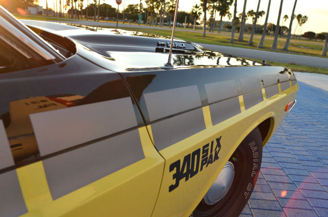 1973 Challenger 6 PACK! Selling my 1973 Dodge Challenger. Very nice restoration that is ready for any car shows you take it to. This car will burn tires and is not recommended for novice drivers. VIN# JH23G3B280705 Over 40+ pictures here: https://flic.kr/ps/2kxhaZ Under the Hood is a built 340 cid engine (6 pack) completely redone with tonâs of goodies and over 425+ Horsepower. 340 crate engine with SIX-PACK! Aluminum Heads Roller rockers & springs Performance Headers MSD multi-Ignition system C&R Indy Racing Aluminum radiator Electric fan Milodon Road Race Oil Pan Rear end rebuilt Fuel Rails Performance Intake Manifold Power Brakes with Front Disc Brakes Power Steering 4 pistol grip (Manual Transmission) Rally gauges Bucket seat with center console Wheels with Aluminum Dog dish caps Exhaust system with flowmasters Chrome pulleys CHIP FOOSE style paint job I bought the car from Pennsylvania from a mopar collector. The carâs assembly was The Dodge Main Plant located in Hamtramck, MI. It originally came with a lower 5.2L V8 version engine, but has been completely restored to this six-pack beast. From what the previous owner told me it was restored somewhere in 2010 and has been mostly used for shows. The car drives really nice and lots of Horsepower. Paint is in really good condition. The trunk, doors, hood are all nicely aligned. Transmission shifts real good. The Six-Pack carburetors are all nicely sync together. Mileage shows 54,xxx miles and on title it is mark has exempt If youâre looking for a good company to finance classic cars I would recommend JJ Best Iâm located in Miami about 30 minutes away from the airport. Feel free to come see the car in person. NO SCAMMERS. Car has clean title under my collection/dealer name. Any inquires email me. $500 non refundable deposit required within 24hrs of buying or bidding. Thanks for looking.
