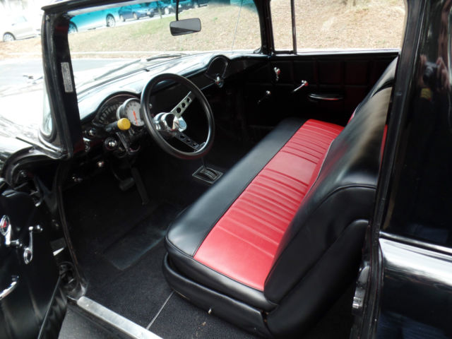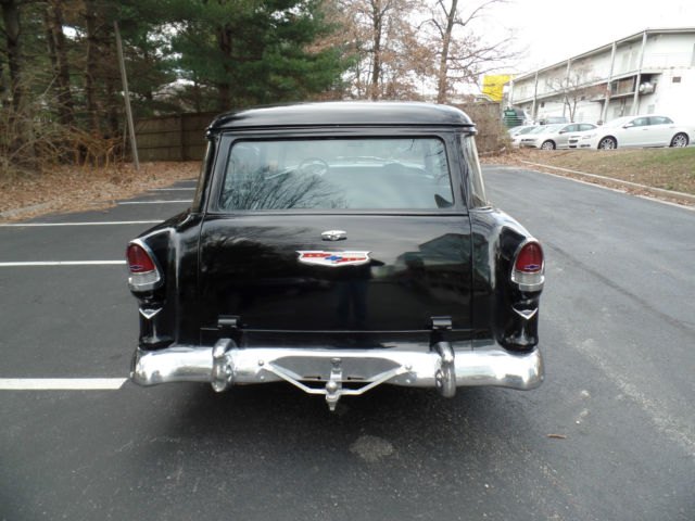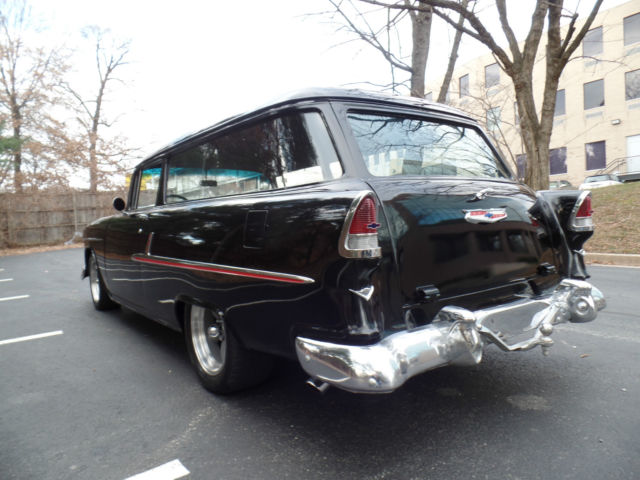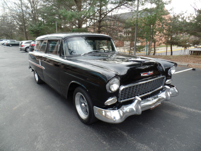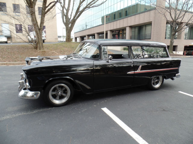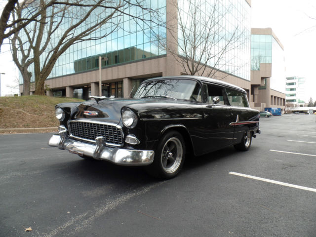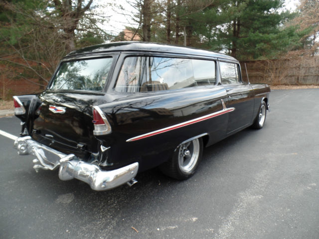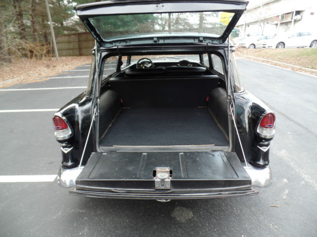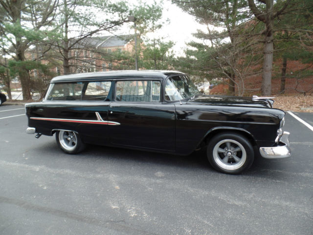 1955 CHEVROLET BELAIR HANDYMAN WAGON WHEN PEOPLE SEE A CLASSIC CAR GO DOWN THE ROAD THIS IS THE ONE THAT MAKES THEM SMILE. CHEVROLET BUILT 1.7 MILLION CARS IN 1955 AND THE 2 DOOR BELAIR HANDYMAN WAGON WAS ONE OF THE LOWEST 1955 BODY STYLES PRODUCED. THIS LOW PRODUCTION NUMBER QUALIFY AS INVESTMENT GRADE STATUS. ONE IMPORTANT PART OF THESE CARS IS THE BODY OF COURSE AND WITH THESE LONG PANELS AS WELL AS THE MIRROR FINISH BLACK PAINT, IT LOOKS GREAT WEATHER TAKING IT TO A SHOW, DRIVING IT TO WORK OR JUST GOING OUT TO DINNER. IF YO HAVE A PLACE AT THE BEACH THIS IS THE GO TO CAR OF CHOICE. THERE ARE NO VISIBLE SIGNS OF ANY RUST OR BODY DAMAGE AND ALL THE TRIM AND STAINLESS ARE IN PLACE AND IN GREAT CONDITION. THE DRIVETRAIN CONSIST OF A FRESHLY DETAILED 350 CI CHEVROLET V8 BACKED BY A TURBOHYDRAMATIC TRANSMISSION AND THE CORRECT FACTORY REAR DIFFERENTIAL AS GREAT AS THE EXTERIOR LOOKS, YOU WILL LOVE THE INTERIOR. IT HAS BEEN PROFESSIONALLY REUPHOLSTERED IN A TRADITIONAL MATCHING BLACK AND RED SEATING FOR 6 WITH FRESH BLACK CARPET THROUGHOUT. A COMBINATION OF FACTORY AND AFTERMARKET GAUGES MONITOR THE VITALS. THE BEST PART ABOUT THIS CAR IS YOU CAN GET IN AND DRIVE IT TODAY BUT IF YOU WANT TO TINKER WITH IT OR CHANGE A COUPLE THINGS ,IT IS SO EASY TO WORK ON. ROUNDING OUT THE PACKAGE IT HAS A GREAT LOWERED STANCE WITH AMERICAN TORQUE THRUST WHEELS AND A GREAT SOUNDING DUAL EXHAUST SYSTEM. THE BELAIR HANDYMAN WAGON DETAILS ARE DESCRIBED ABOVE. THE BELAIR HANDYMAN HAS BEEN NICELY RESTORED AND REPRODUCED JUST THE WAY YOU WOULD WANT IT. THIS IS A GREAT HOTROD/SURF WAGON/COLLECTOR CAR THAT WILL SURELY BE A HIT AT YOUR NEXT CRUISE NIGHT,CAR SHOW. I AM SELLING THIS CAR FOR A FRIEND. WE ENCOURAGE YOU TO COME SEE THE CAR IN PERSON, YOU WILL NOT BE DISAPPOINTED GOOD LUCK AND GOOD BIDDING. THE BELAIR HANDYMAN WAGON IS SOLD AS IS WHERE IS WITH NO IMPLIED WARRANTY