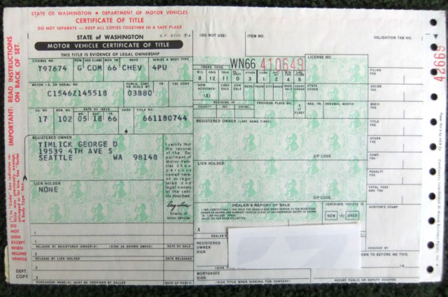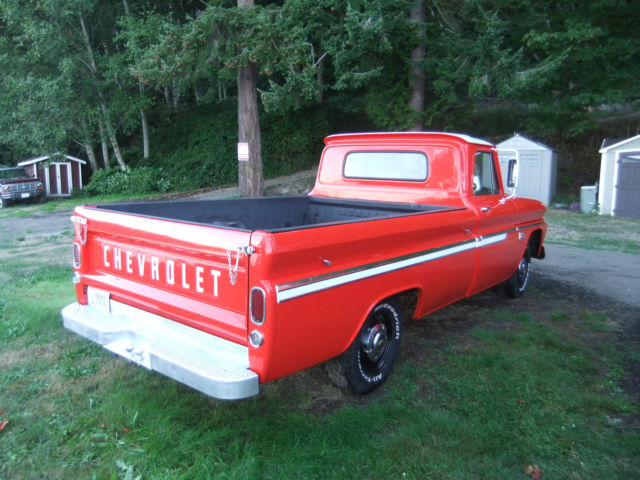 Incredibly RARE!! One Owner 1966 Chevy C-10! The Perfect Holiday Gift for Someone that Has Everything. Their Very Own Red Chevy Sleigh! ... My Dad Bought this NEW on April 11th, 1966. We have the Original Title, Glove Box Sticker, Owner's Manual, Purchase & Insurance Receipts & Warranty Book. Dad owned Auto Body Shops so this was Meticulously Maintained and All Records Were Kept. Freshly painted in 2000 then carefully placed into storage until just recently. She has a new battery & was cleaned & flushed out and runs fine! I'm sure she could use a little tinkering but she's very special! The Purrrrfect Christmas Surprise! The New Target Master Engine was Installed 3/16/1982. The Mileage then was 153,350. Mileage now shows 93,111. (I believe the total mileage now is 193,111 & the Target Master has about 40K miles on it but I'm not sure.) New Tires were installed at 171,995 The New Muffler was installed at 192,985 The Bench Seat was Re-Upholstered before being stored. This Beauty is Clean & The Body is Nearly Perfect The Line-A-Bed Keeps Everything Clean & Tidy. The Boards From Underneath Look to be in Great Shape. I have MANY more pictures that I can email too. All Original Receipts & Manuals Included Available for Pick up or Buyer to Make Shipping Arrangements. Serious Buyers only.