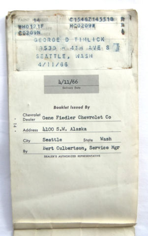 | VIN (Vehicle Identification Number): | C1546Z145518 | Year: | 1966 |