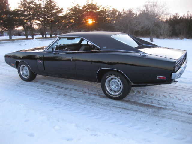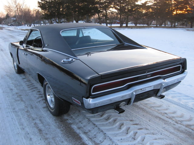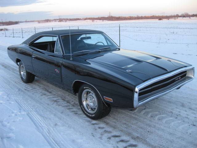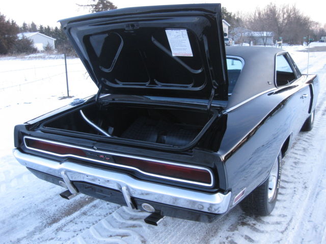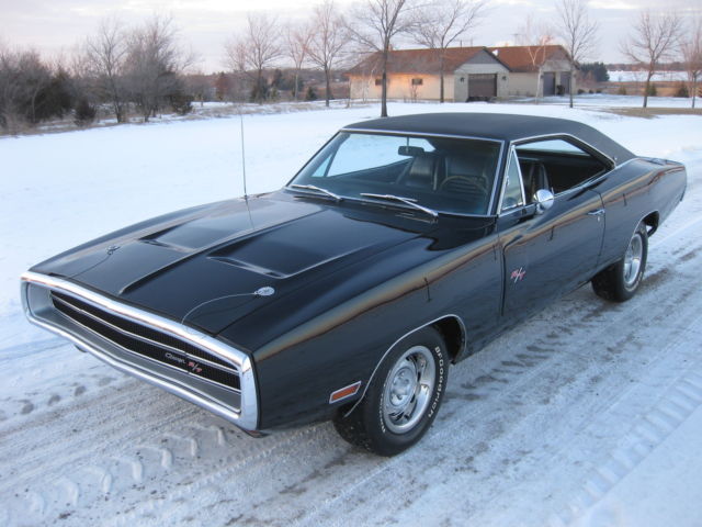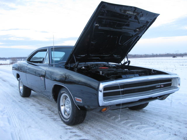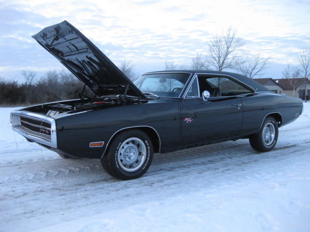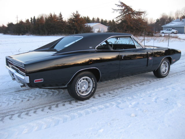 I cannot take paypal for the full amount, just the deposit. If you have any questions on payment please ask . 1970 Dodge Charger black on black RT/SE. This is a real Charger 500 SE, one of only 2887 ever built. The car still retains its exceptional condition original SE leather and woodgrain interior with a new headliner, carpet and rear package tray. The car has the original numbers matching Big Block engine that runs absolutely perfect, numbers matching 727 Torque Flight transmission and rear differential that it left the factory with. This car retains all of its matching body numbers, fender tag and original build sheet. What makes this car super rare and most likely one of one ever built is the factory paint code. The cars build sheet and fender tag are both coded for FC7 plum crazy purple but the car was never painted FC7 as documented by Galen Govier back in May of 1996, it left the factory in the more rarely produced white. Also very rare is the D55 axle code 2:45 gear ratio rear end which makes this Big Block Charger a very nice, relaxing cruiser to drive! The car has been made into the Road and Track model with new RT badging and the Big Block 383 engine has been dressed to look just like the RT's 440 to the average guy. All could be brought back to the build sheet with a paint job and some emblems if the serious collector ever wanted to do so. The car has all new brake lines, hoses, master cylinder and wheel cylinders as well as a new fuel tank, lines and hoses. The car has had a new trunk pan, quarter panels, trunk extensions, wheel houses, rockers, torsion bar crossmember, rear rails and inner and outer rear valance installed to create the beautifully straight and solid jet black car it is today. If you have been looking for a highly collectable Mopar Muscle car or the ultimate Dodge Charger here is your chance. All of the paperwork from Galen Govier will be included with the car. Ask questions or come take a look.
