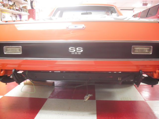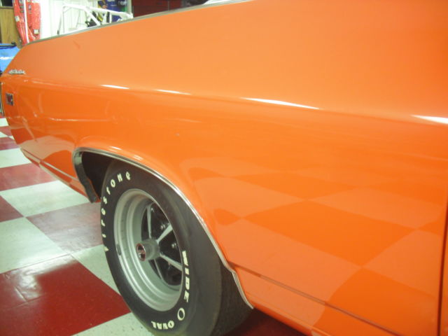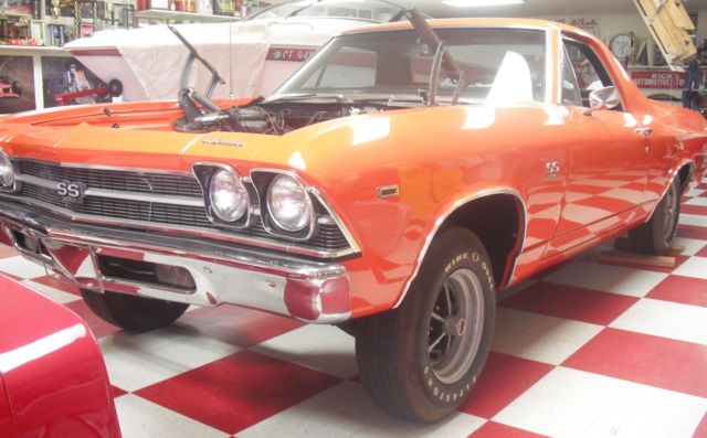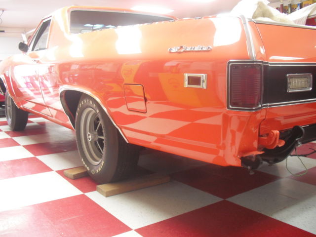 1969 CHEVROLET EL CAMINO SS-396 THIS VERY NICELY RESTORED CAR IS NOT YET FINESHED BUT EVERYTHING IS AVALIBLE AND IN VERY GOOD CONDITION PLEASE ASK ANY QUESTIONS YOU MAY HAVE I HAVE OWNED THIS CAR SINCE 1986 THIS CAR WAS IN ITS ORIGINAL CONDITION WHEN I PURCHASED THE CAR THE CAR HAS BEEN TAKEN COMPLETLY APART AND REFINESHED TO A VERY NICE CONDITION AT THIS OINT THE FRAME BODY AND INTERIOR ARE DONE THE ENGINE AND TRANSMISSION IS NOT YET INSTALLED BUT EVERYTHING IS REDONE AND BEING PREPARED TO BE REINSTALLED I AM GOING THREW A FEW MEDICAL ISSUES, I AM LOOKING TO SELL MY CAR WHILE I AM NOT IN A NEED TO SELL FOR THE MONEY THIS CAR NEEDS TO BRING A FAIR PRICE. I AM ABLE TO EITHER COMPLETE THE CAR AND OR SELL AS IS THIS EL CAMINO IS A REAL FACTORY ORIGINAL SS396 AUTO TRANS AND A 3.55 POSSI TRACTION 12 BOLT REAR END THE ENGINE BLOCK, CLYNDER HEADS, INTAKE & EXHUST MANIFOLDS, TRANSMISSION, REAR DIFFERENTIAL ARE ALL THE ORIGINAL EQUIPMENT AND ALL NUMBERS AND DATE ARE CORRECT TO THIS CAR THIS CAR HAS FACTORY AIR CONDITIONING, POWER STERING, TILT STERING WHEEL, TACH AND GAUGES. ONCE AGAIN FEEL FREE TO ASK ANYTHING YOU MAY NEED TO KNOW ABOUT THIS CAR THANK YOU