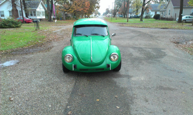 Custom 1974 Volkswagen Super Beetle 1600 cc dual port that runs great (just had valves adjusted) with new Emerald Green Metallic paint, custom wheels, new tires, new billet aluminum running boards, custom windshield visor, custom 3 way headlights (marker lights, headlights, and turn signals), low profile taillights, new cal style window seals on all windows, dark tinted windows, new interior, a custom rocking sound system with remote and head unit has am/fm/cd player with usb port and auxiliary port for easy connection of external media sources, new adjustable front strut housings and struts (lowered), new rear air shocks with air fill connection in the engine compartment. It shows 19,167 on the odometer (119,167). We also have an original set of Weber carbs with Scat intakes (freshly rebuilt) that we'll throw in if buyer wants to run dual carbs. This is not a complete restore, but it's real close...The only known problem is the windshield will need to be replaced ($250 price quoted). We will produce receipts for everything that's been done to the car at buyers request (and there are a bunch of them...). Any questions feel free to message me. Thank you for looking.