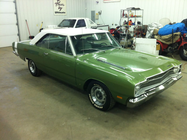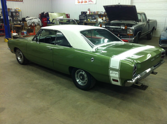 1969 Dodge Dart Swinger 340 car This is a very clean factory "P" code 340 Dart Swinger. It was restored a few years ago and it looks, runs and drives very nice. The underside is rock solid and is correctly painted body color, the front end was rebuilt, the exhaust, tires, brakes, etc. are all in great condition. The car is mostly stock and has some non stock modifications. Some of the non stock things on it are an LD340 Edelbrock intake manifold, and Edelbrock 4bbl carb, a healthy cam, oil cooler, electronic ignition and chambered mufflers flowing to stainless tips giving it a great muscle car sound! It also has "X" heads, a 3.23 suregrip 8 3/4 rear end and dual exhaust! A great package for a fun street machine or cruise night car. The car is straight and very clean, the chrome and trim are in excellent condition, the engine and trans are not VIN stamped so it looks as though they have been replaced. It has manual steering, manual brakes, tinted glass, radio delete plate, a white vinyl top and a white tail stripe. It also has a new trunk mat and spare tire well cover board (not pictured). The car is overall in great shape and doesn't need anything to drive and enjoy right now! "Buy It Now" is $19,900 / or if a few days go by make me a close offer / Delivery is available Contact Eric at 612-669-2277 with any questions or email here Seller reserves the right to end the auction at any time and for any reason.