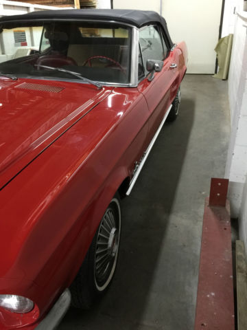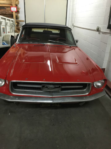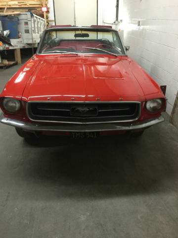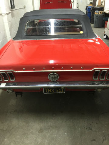 We are selling our 1967 Ford Mustang Convertible. It is an Excellent looking, High Demand 45+ year old Classic Car. A well preserved Southern California Mustang. It looks great and Runs very smooth, with it's completely rebuilt Engine and Transmission having Zero miles. The Mustang has spent several years in a warehouse, and has undergone a partial restoration. Due to poor health and diminished interest over the years, the Car has just sat in the warehouse. No major Issues, the Body is solid without rattling or squeaks. The front floor panels show normal ware, and at some point in the future should be replaced. Nice sounding exhaust. The body is straight with great lines, as seen in the photo's. No rust on body panels. No paint bubbling. Paint & Interior is in good condition. Ragoon Red paint shines and its vibrant. Power top works great. It does not have any holes or tears. Glass around the car is perfect without cracks and chips. Chrome is all there nice and shiny. All lights in working condition. All four windows work and they roll up and down with ease. Doors open and close effortlessly. This is a fantastic and very desirable 67' Mustang Convertible. The winning bidder is required to make an immediate $500 Deposit within 24 hours following the close of the Auction. The full balance is required within 7 days, following the close of the Auction. This Mustang is being offered in it's as is where is condition, all sales are final.