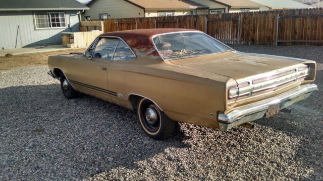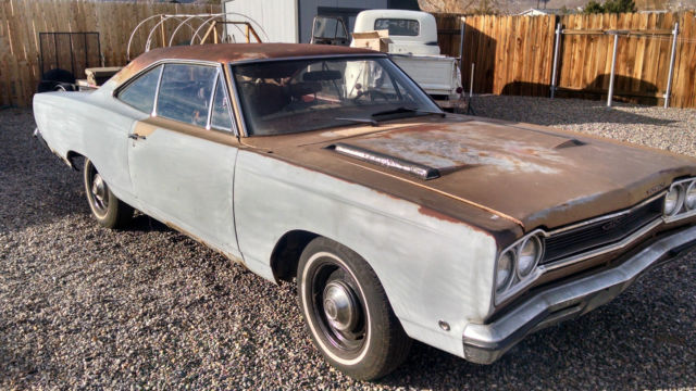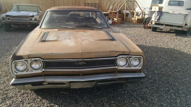 I have for sale one of my 68 Plymouth GTX's. Yes, I have two! For what I plan on doing to the car, I thought I would keep the one that is in the worst condition and sell the good one. This one is a project, but does run and drive. It is not road worthy yet, needs a few fixes before it can be driven on the highway if you want to drive and restore along the way. It has the usual rust issues like most of these Mopars have, but its in a lot better shape than my other one. For most of all the rust issues on this car, they make patches for those areas. It will need a new trunk pan, some drivers side floor patches, lower trunk lid lip, rear window valance, etc.. The drivers side is all good, just the lower rear quarter of the pass side has rust. I purchased a new pass quarter panel skin to repair that rusted area. Pass side had some dents that were pulled out, thats why its primered. I can take more pics of any areas needed. Frame rails and underneath are good, just surface rust. The car is mostly all original. The only thing not original is the engine block itself. Heads, intake, exhaust, tranny, rearend are original to the car. The engine block itself is a 64 413. Its been rebuilt. Lots of torque! Auto 727 tranny that was just serviced. Brakes are mostly all new. It has no power steering or power brakes. Drums all around. New shoes, hardware, wheel cylinders, master cylinder and brake lines to the front. Only thing I would replace is the lines going to the rear, there not leaking, just peace of mind to know all brake system is new. It has a clean Nevada title in my name. From what I've been told, this color combo is rare! Interior needs done, but is all there. I ripped out the old nasty headliner and carpet, so you can see everything that needs to be done. Rear package tray is not all hacked up. 8.75 non sure grip rearend. All the trim is there, all the glass is good, no cracks or chips! Definately needs restored, but a great start and you don't see many, if any of these around! These are worth good money when restored. Not many around that are not restored already. Come get this one and make it the way you want! If you use the Buy It Now, I will pay for shipping the car to you!!!