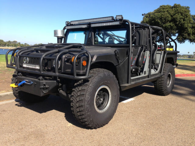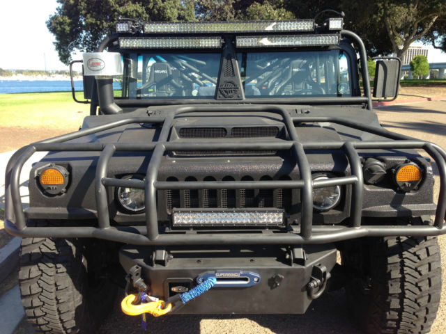 completed in 2014 ,custom 2008 hmmwv "alpha special ops" duramax turbo diesel 500 plus horse power 900 ft lbs torque with 6 speed stage 6 PPE built allison transmission and torque convertor ,2wd or 4wd options, custom heavy duty engine mounts,custom aluminum radiator and intercoolers,  custom 4â exhaust system,  custom truck vault, rotopax fuel carrying system, Hayden heavy duty fan clutch, performance low temp thermostats, viair on board air system with dual compressors, horn blasters 4 train horn system, front and rear 16k lbs super winch talon with synthetic lines , front and rear eaton lockers, 40â³ good year wrangler mtr, rigid industries lights, truck lite led front and rear lights, dual yellow optima batteries, centri pre cleaner, wilwood big brakes, recaro cs sport seats, custom scorpion liners paint, 17â method true bead lock racing wheels including a full size spare, am safe 5 point harness  , upgraded heavy  duty 12k half shafts, heavy duty upper control arms, custom under carriage , custom predator exo skeleton roll cage and light bar, predator hood scoop,predator snorkel,custom predator search and rescue front and rear bumpers, predator air hook system,predator custom heavy duty brush guard, hummer dan custom rock rails, dual mil spec  antennae ,snow water methanol injection system, 2 inch body lift and 2 inch suspension lift, alpha steering wheel, cb radio and custom mount,  custom security system, titled as a 1993 hmmwv since military vehicles do not have a true vin I had to put 99999999 . Free and clear 50 state title. William thehummerguy. com 760-443-7112 check out the video  Â