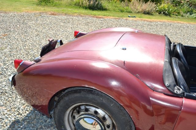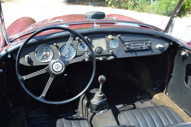 This car has always been in the Sacramento area--the license plate frames are from Sacramento dealer Newton Cope and body rust is not an issue on this car. I've owned the car since 2001 and was told that there were two owners before me. The car runs a "B" engine (18GA-U-H3683), rear end and I changed the SUs to a Weber carb in 2002. The car always starts for me and runs robustly! (I still have the SUs, if desired.) The fuel pump is fairly new, replaced about 5 years ago. The car received a top overhaul in 2001 and the transmission was rebuilt at that time. Car has been kept garaged as long as I've owned it and I drive it maybe 250 miles/year. Mileage indicated above (100,000 miles) is estimated. I am selling it as storage has become an issue and we also have an Austin Healey in the family... The body is pretty straight and the doors close nicely. There are a couple of small dents and a gouge near the rear bumper but everything is pretty superficial. The car currently has original-style bias ply tires. The antenna was broken off and needs replacement. Radio reception is still ok, however. There is a non-stock speaker that was installed ages ago but it works. The fuel gauge has never worked as long as I've had the car and the turn signals don't work properly. The odometer and speedometer don't work but the tachometer, oil pressure and oil temp gauges do. The car has a tonneau but no top or top frame. The "MG" grille badge/hood ornament fell off recently and has not been replaced. Lap belts and a radio with cassette player and 3.5mm line-in were installed around 2001 or 2002. The rear seals need some attention and leak. The paint is oxidized. The interior carpets have seen better days. I purchased a set of painted 48-spoke 15" wire wheels (but no hubs or knock offs) but never used them, they come with the car as does a set of chrome trim rings (never installed) for the original disc wheels. I also have a number of miscellaneous new parts that were ordered but never installed. I have a set of passenger side floorboards (used but in decent condition) that come with the car, the drivers' side were replaced about 6 months ago. I will send the aftermarket car cover with the car. I will also includ a set of sidecurtains that I purchased on Ebay years ago but these are not in good condition. Thank you for looking, I would love this car to find a good home, it's always treated me well!