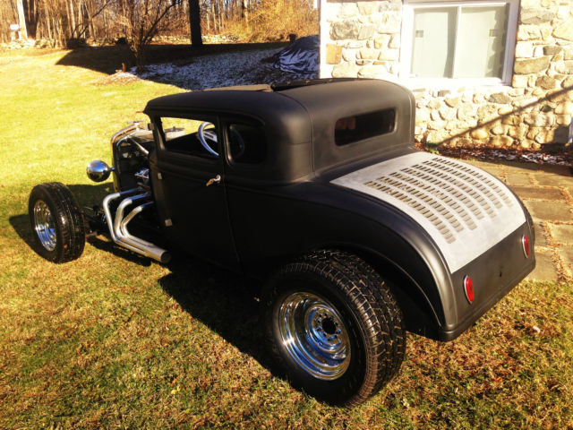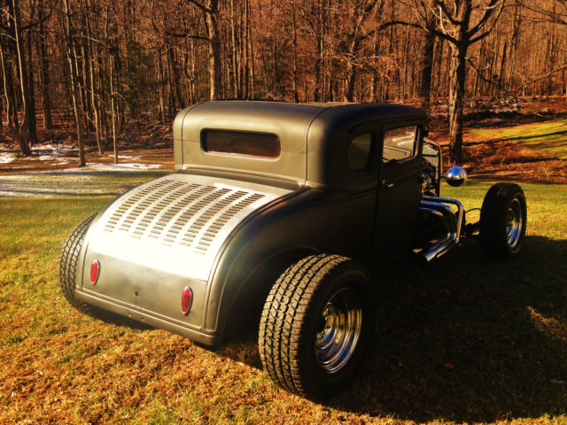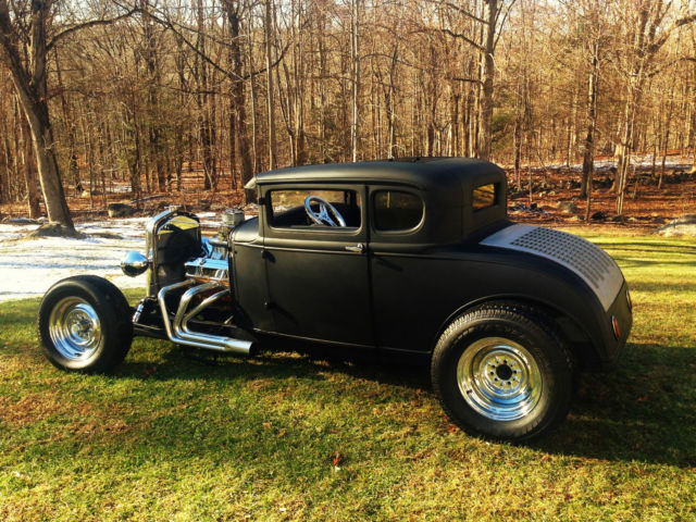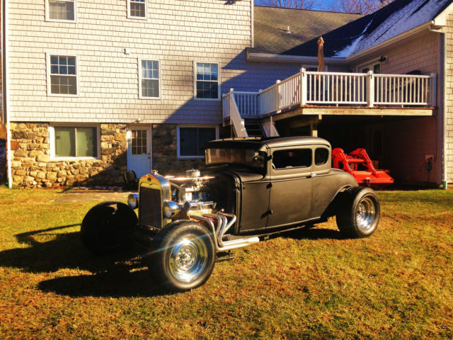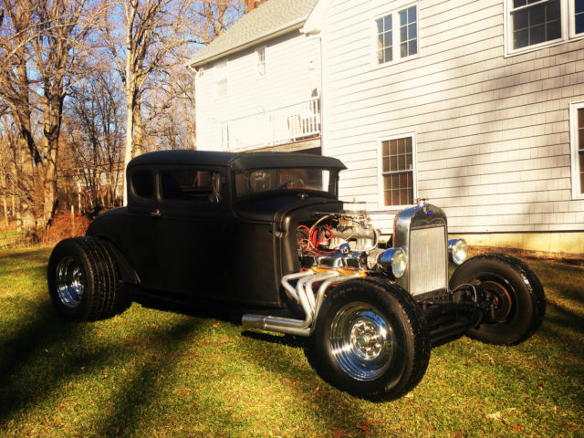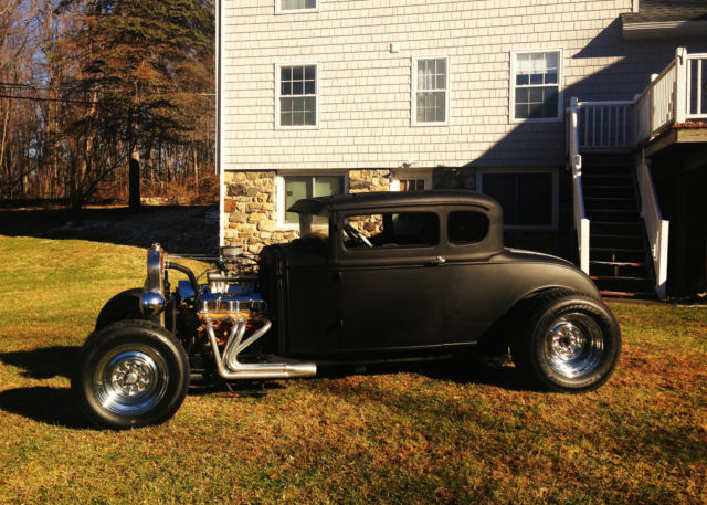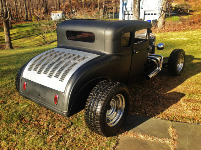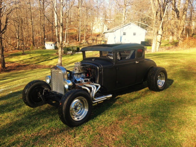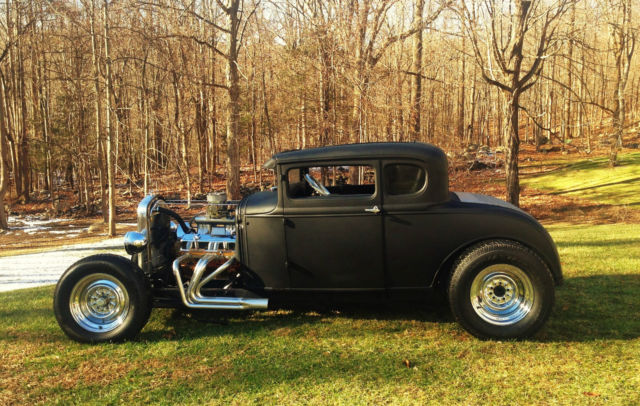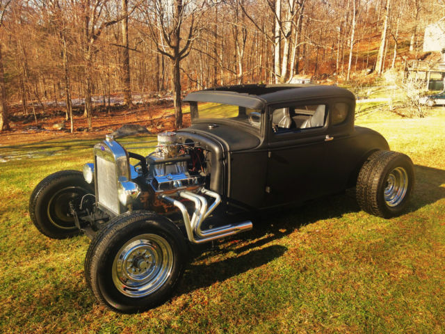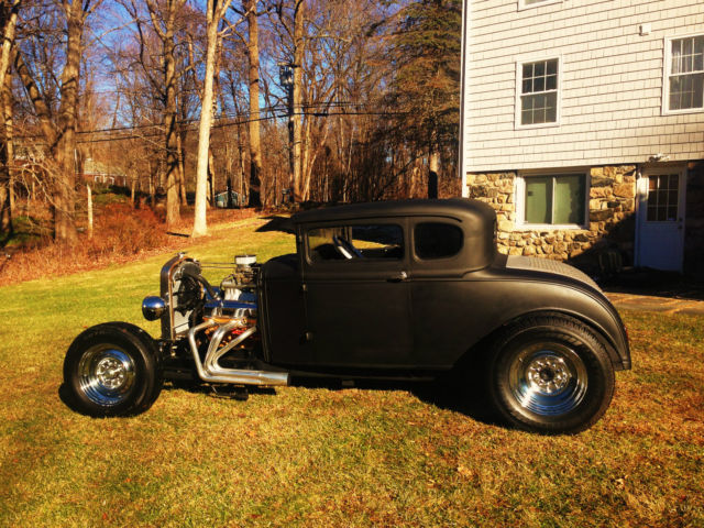 Up for auction is my 1931 Ford Model A chopped Hot Rod Coupe. This hot rod runs like a dream and sounds amazing. The body is an all steel Henry Ford '31 5-window coupe. Chopped 4", still has all the original garnish moldings cut down. Full louvered trunk, t his body was very clean from the start. 39' Ford taillights, Chopped Model A grille shell with chopped aluminum radiator/electric fan. Frame is a full custom 2x3 box steel frame Z'd in the rear for a super low stance, Split wishbones up front with a 4" dropped front axle with all new disc brakes. The car is NOT channeled, has tons of room inside and will fit a tall driver. All new 350 Chevy Small block, built and balanced, serpentine pulleys/belt, Brand new Starter, Alternator, Weiand Tunnel Ram, Brand new Jet hot coated sprint style headers, Turbo 350 automatic. This car runs perfect and fires right up, very strong running. Interior is fully finished, full custom 2x2 box reinforced floor with full tunnel, finished door panels, black carpet, 2 Bucket seats, B+M Shifter, has front, rear and quarter windows. Stock firewall tubbed for the SBC. Motor has been set back. Full custom trunk fully finished with black carpet, Spun aluminum gas tank, rear mount battery all new. Brand new chrome reverse wheels and brand new tires all around. Car has chrome headlights, both working headlights and tail/brakelights. All new wiring all around. This car was built to sit low and has an awesome stance. All pro built. This car catches tons of attention and is not for the faint of heart. If you're looking for a quiet timid rod this probably isn't for you. It draws crowds wherever it goes and the neighbors can always hear it at first fire up. Clean Clear title with matching VIN #. ANY Questions please call/Txt: 845-705-6146 NO TRADES Low Reserve Terms of sale: Sold as-is, where is. All sales are final. Winning bidder has five days after auction to pay in full. Winning bidder to make all shipping arrangements and payments although I can help load and have a great shipper available.