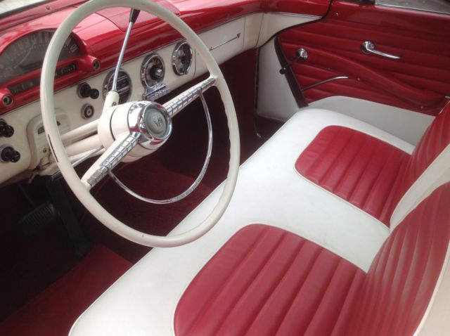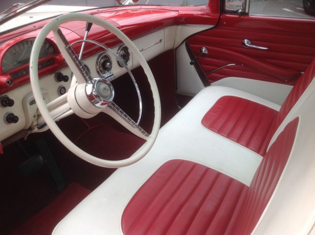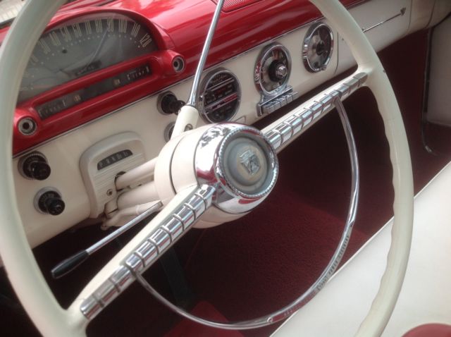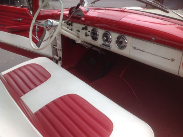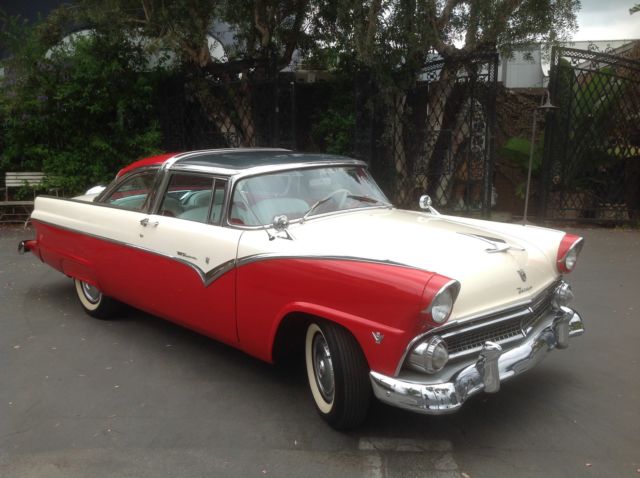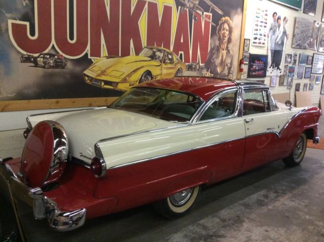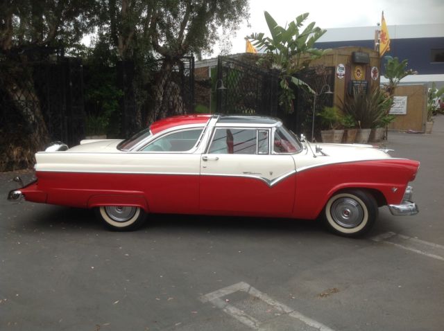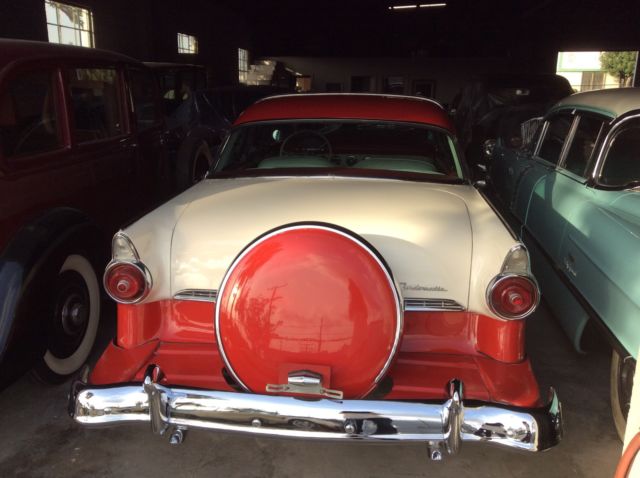 1955 Ford Crown Victoria Skyliner Coupe, original 64B "Glasstop Vicky" with green acrylic half-roof bubble window over front seat, zippered sunshade headliner and flashy stainless steel band crowned roof-line. Behind the wheel feel the thrill of the panoramic wrap-around wind-shield with over a square foot of added "look-out" area! Enjoy the Fabulous Fifties color combination with white hood and trunk, red roof and skirts, and red and white vinyl interior featuring six-seater sofa-wide seats! Inspired by Thunderbird styling with wide smartly contoured grille, visored headlamps and fin-shaped rear fender line. Uniquely Crown Vic with shiny stainless v-shaped trim, fender skirts and Continental Kit spare tire carrier on extended rear bumper. MagicAire heating, ventilating, defrosting system instrument panel controls slide smoothly, only blower motor needs rebuild. Original engine serviced with correct stock parts in very good running condition, only the transmission gear box needs to be rebuilt. vin# USFF173978, Length 198.5 inches, Limited Edition Collectible, one of 1,999 built, approximately only 50 remaining in existence! Own This Rare Milestone Skyliner for Half the Cost of High Priced Commissioned Auctions! Appraised at $48,000, Buy it now for half price only $24,000! Great investment! Clear California Title, Warehoused on Broadway near 91 Freeway in Gardena, California, Private Party Collector, James Robert Reade 714.931.3146