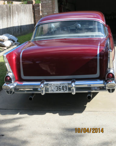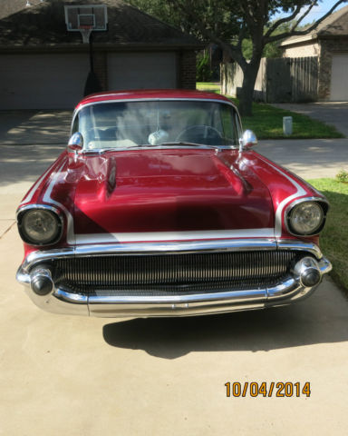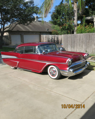 This unique auto is one of two 57 Chevys known to exist with these customized details. I have owned this auto for the past nine years and just recently discovered that this is a copy of another one owned By Dave Jenkins of Ypsilanti, Michigan, Apparently, my Chevy was built to copy Dave Jenkins. It has won numerous trophies in car shows in the Illinois area. Some of the special details on this car are: Majestic red paint with silver scallops and pin stripeing Rolled and Pleated interior and trunk AM - FM Radio and tape player 350 crate motor White wall tires Customized fender skirts Shaved hood, doors and trunk Lancer hubcaps Tachometer and gauges 57 Buick Grill 350 Turbo transmission with floor shift Lowered three inches Keyless door and trunk entry Under dash air conditioning Fake side exhaust pipes and spotlights The man who previously owned this car purchased it in Illinois on January 30, 2001. He did some customizing there then more in the Corpus.