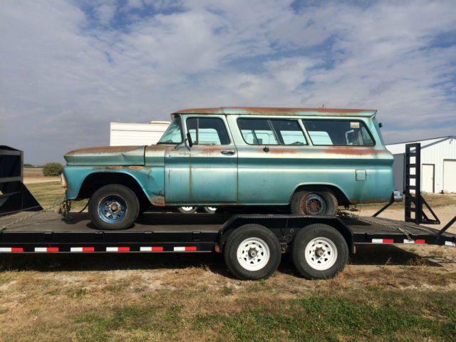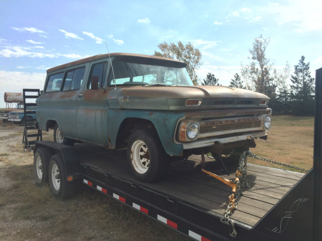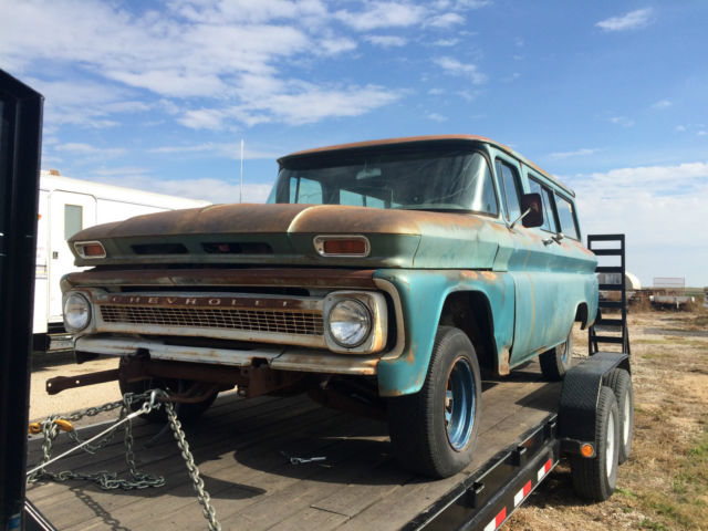 Up for sale is my 1962 Chevy Suburban. Very solid project, just have too many in front of it to let it just sit and rot. It is a 62 suburban with barn door option for the rear doors, was a factory Air conditioned truck when it was new, still has the tag but the components are gone. All the holes are still in the firewall for it. The original spare tire and holder are still mounted up under it and the original jack equipment is still mounted under the seat. This has the Custom Comfort package as seen by the seats and the seat belts were also an option and are still with the truck. The mat on the main part of the interior inside is in great shape, the wood underneath is not rotted. Windows all roll down smooth and the back doors open and shut with ease. The second row seat is mounted and can be unmounted and moved around. Upholstery is in great shape. This suburban has All of its original windows in it with the original side window latches which are hard to come by. Inner fenders are rust free and the radiator support and grille surround are in great, solid shape. The original engine is still in it which is a 261 Inline with the factory 3 speed on the column transmission. Does have some rust in the usual places like the trucks, which is in the rockers, and partially on the floor but nothing too major. All the mounts of the body are solid. This suburban has the original limited slip posi-trac rear end in it and the sticker that was placed behind the front seat. Its a very clean truck, and I hate to sell it but I wont get to it anytime soon so hoping someone can make it cool again. Very few are seen driving around, very rare that it was a factory air truck too. Clear title. I have a front bumper that will come with it. If interested, I have two brand new fenders i had bought for it that I will throw in at an extra cost. Call or text with questions 785-259-1658, thanks Keywords: C10, GMC, Chevelle, Camaro, Chevy Truck, Chevrolet, C20, C-10, C-20, Apache, Custom, Suburban