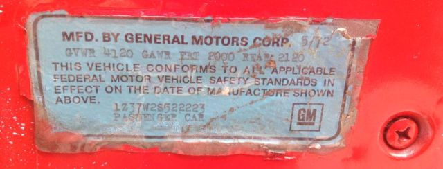 | VIN (Vehicle Identification Number): | 1237W2S522223 | Year: | 1972 |
