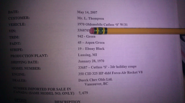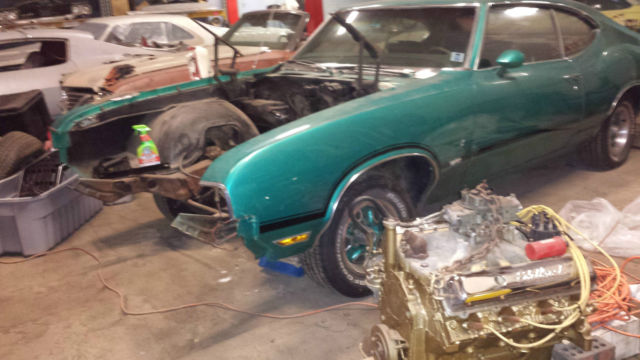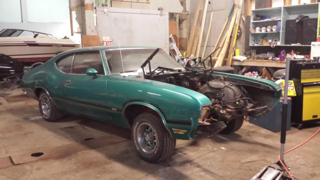 I am selling a few more rare rides I had planned to restore but the purchase of a new b uilding has me selling them off. I am selling my rare 1970 Cutlass W-31 hardtop- factory bench seat 4 speed, car. Less than 500 4spd W cars built and this one is a factory B ench Seat . I do not have the original 350 engine, only a NOS W-31 cam, it comes with a 70 dated 455 that came from a former 69 W30 track car, I do know the engine runs but only drove around the yard before I pulled it for this W machine. The 4pd is a 69 dated trans and it has a 3:55 rear . The sus pen sion was redone and it still re tains the exhaust which looks to reach up to headers. Very rare Canadian Documented W-31 stick, Green on Green, rare color combo. Originally Aspen Green with Green bench seat. The interior was redone by the previous owner, still in very nice condition. Also recently picked up 442 rear and an additional front bumper set, nice chrome! I have a brand new in the box, Center Force Dual Friction Clutch, Pressure Plate, throw out bearing, Flywheel, etc! No corners cut, just dont have the time. This W Machine is not perfect, needs someone to put some time into her, and engine and trans re-installed, but is documented and a rare stick W-31. Thanks for looking.