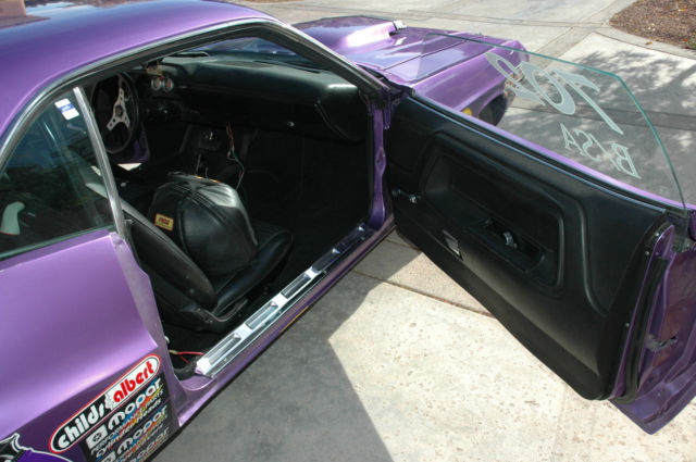 Up for auction is this 1970 Dodge Challenger stock eliminator car. The car is a 1970 Dodge Challenger which is currently raced as a 1971 car to take advantages of certain NHRA rules. The car has a clean Nevada title. The car is a purpose built Phil Mandella car which has built some of the most famous drag race cars around. The car has 51% of it's weight on the rear wheels and 49% on the front wheels. The car was originally a 383 big block car but has been raced as a 440 six pak car since it was built as a race car. The car was raced last in Las Vegas in March of this year. It ran almost 6 tenths under the index with a 14 year old back up motor. The car has a Dana 60 rear end with Mark Williams axels and aluminum spool. Some of the other components are: heads by Don Little, Carburetors by Clark Holoryd, Pro Trans, Turbo Action, MSD, Bogart, with many more. The car is set up on two step launch. It hooks hard and goes straight. The car comes with two sets of rear wheels, a complete new motor with a set of newly finished Don Little heads, new pistons, rods. The block is being finish preped at HBR Racing Engines here in Vegas. A spare 727 all aluminum trans also comes with the car. I may be interested in a trade. Call 702-378-8404 with any questions.