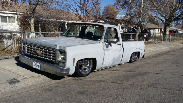 have a fully bagged 79 Chevy c10, all new air ride on it, custom 3 link wishbone rear end, bed floor raised 22" wheels, all body work finished. Interior 95% finished customs speakers door panels with new JL 7.7 marine speakers (loud) 2 JL tw5 13" subs in custom box built for subs and truck. New pioneer deck with Bluetooth JL 500/1v2 sub amp JL 300/4 amp for door speakers 99 Silverado seats they have been fabbed to sit low. Headliner wrapped in red vinyl black dash no cracks red door panels 3 gauges inside 2 for front and rear air (each bag has its own needle for pressure) one gauge for tank pressure, fresh top end on motor, camel hump heads, rolls rocker arms, new timing chain, new comp cam, edelbrock carb , block hugger headers that have been coated by jethot 2.5" exhaust with flow master has a 700r4 tranny has been rebuilt (also have the turbo 350 trans to go with the truck) truck runs great, 120 amp alternator, new starter, new 3 row aluminum radiator, firewall has been shaved gas tank doors shaved, drip rails shaved, relocated into the bed, 8 valves, 4 switches, 1/2 " line with air flow reducer (can easy be taken off) give me a call or a text 801-413-9082 thanks. Buyer responsible for shipping charges.