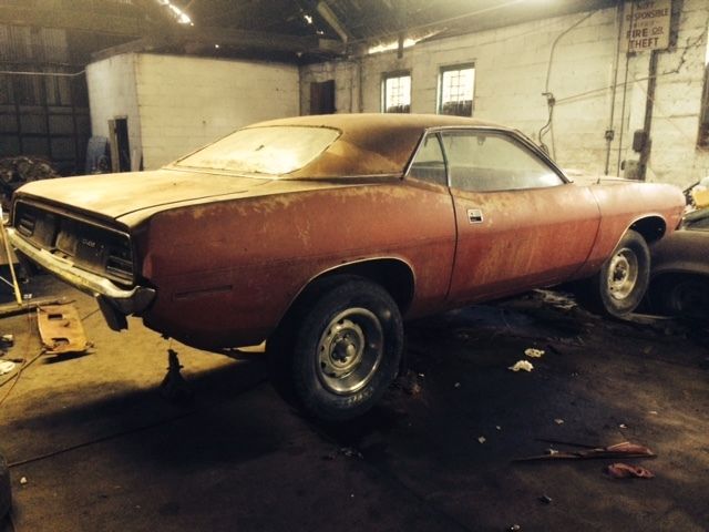 THE RESTORED PICTURE IS A STOCK PHOTO 1970 PLYMOUTH CUDA WE STARTED THIS PROJECT WITH THE HELP FROM ALL GIRLS GARAGE THEY DID AN AWSOME JOB IT IS A REAL ORIGINAL 1970 CUDA BS23N0B 383 AUTOMATIC POWER STEERING RED ON RED INTERIOR BLACK VINYL TOP CAR IT TOOK 45 YEARS TO MAKE THE PAINT AND BODY THIS PERFECT IT HAS MOST OF ITS ORIGINAL PAINT WE ADDED 1 LOWE QTR PATCH DRIVERS SIDE AND A NEW TRUNK FLOOR FOR FUEL TANK AND BRACKETS THE INTERIOR IS BRAND NEW LEGENDARY NEW DASH PAD THE CAR HAS ALL THE GOODIES HIDDEN UNDER THE HOOD AND UNDER NEITH THE CAR HAS A 1969 HP2 440 BLOCK .030 OVER WITH A STROKER KIT HAS A EDELBROCK 2087 TOP END KIT CAM LIFTERS SPRINGS INTAK CARBURETOR ALUMINUM HEADS RATED AT ESTIMATED 540 HP THIS SLEEPER CUDA HAS A 3.91 POSI NEW GREEN BEARINGS AND COMES WITH ALL THE REAR DISC BRAKE HARDWARE NOT INSTALLED YET HAS REAR DRUM NOW THE POREW BOOSTER IS A 4 WHEEL DISC BRAKE BOOSTER WITH 4 WHEEL DISC P VALVE . WE USED A 727 MONSTER TRANSMISSION AND 2700 STALL RATED FOR WELL OVER 700 HP A RILEEY MOTORSPORTS ALTERKATION COIL OVER RACKNPINION FRONT SUSSPENSION ALUMINUM WATERPUM ALUMINUM WP HOUSING ALL NEW UNDER HOOD WIRING CERAMIC COATED HEADERS NEW BRAK LINES NEW FUEL LINES NEW FUEL TANK,SENDER, 3INCH FLOWMASTERS CALL WITH QUESTIONS