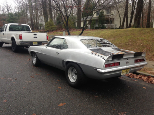 For Sale Barn Find Cortez Silver 1969 Camaro Z28 X77 D80 I bought the car off the family of the Second owner who owned the car since 1978, He restored the car in 1985 and passed away in 1989, The car sat in a damp garage from 1989 until I bought the car in 2014, Factory Standard Black interior in good shape, Factory Tach dash no console car, The original motor is long gone, This was a Street car, street raced in Detroit Michigan for most of the cars life. Rear Shock towers and frame rails are solid, The car has surface rust from damp garage, Floors have soft some soft spots trunk has some scaly rust from original floor mat driver floor has a patch, The car has a non running Chevy 355, Non original M21 4 speed, 12 bolt rear with 4.10 gears, I Just redid the brakes on the car, Installed new flywheel clutch and pressure plate, Drove the car for about 100 miles when the motor started knocking and shortly after seized. Motor is a 70 Chevelle 350 .30 over with 461 Camel hump heads 2.02 valves screw in studs, This car would be a easy project, I do not have to sell. Look at all pictures and ask any questions before buying or making a offer. Buyer is responsible for shipping, I can help load car on trailer $500.00 Non Refundable deposit due within 24 hours of auctions end, Car must be picked up and paid for in cash within 7 days of auctions end unless other wise discussed
