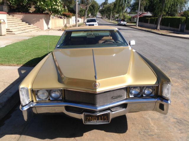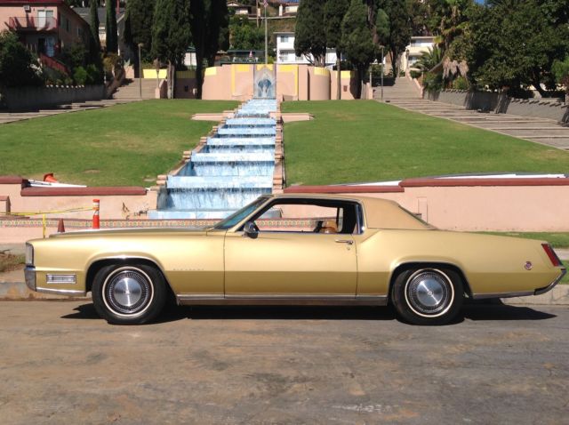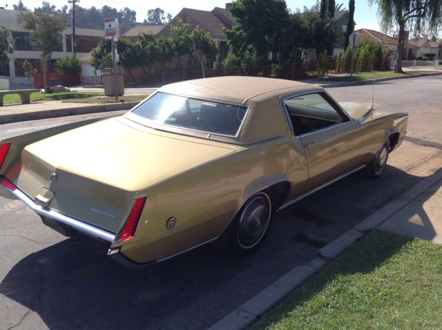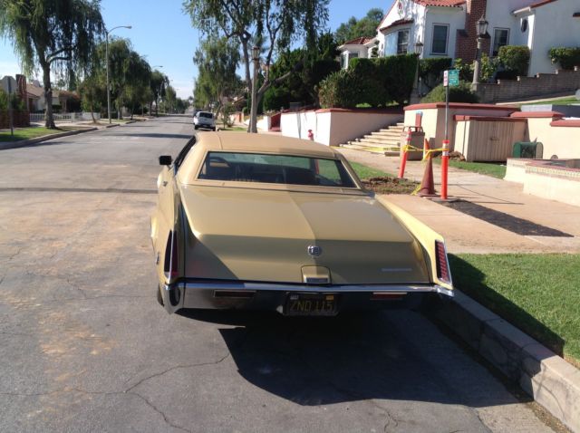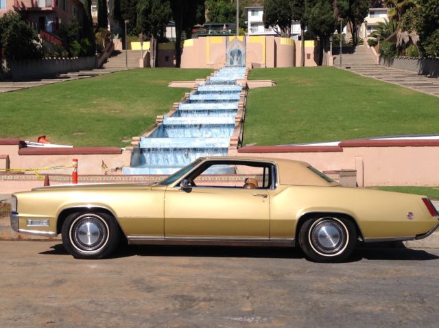 The 1969 Eldorado was the only car in the world to combine front wheel drive, variable-ratio power steering, and Automatic Level Control. The confidence of power front disc brakes and the performance of a 472 cubic inch V-8 engine One owner California Car !!! original California Black plates. This beauty has NO rust and recently been painted back to original showroom beauty !! also done new interior front and rear !! New carpet front and rear along with trunk complete redo !! This car is turnkey ready to hit the street !! drives great !!! AC needs to be repaired to complete this restore !! TOTAL PRODUCTION: 23,333* INTRODUCTION DATE: September 26, 1968 $6,693** Style Number: 69347 Series Code: H Vehicle Production Number: Starts at H9100001 *Reflects Eldorado production only; visit 1969 Cadillac Production for data on rear drive models. **Price on introduction date. On January 1, 1969, front seat head restraints were required by Federal law, and their $18 cost was added to the base price, which made it $6,711. ENGINE CODE 472 Cubic Inch V-8 (375 Horsepower at 4400 rpm) Bore and stroke: 4.30 x 4.06 inches Compression ratio: 10.5:1 Rochester four barrel Quadrajet Carburetor (model 7028230) Dual Exhaust System to Muffler, One Outlet Pipe from Muffler TRANSMISSION CODE