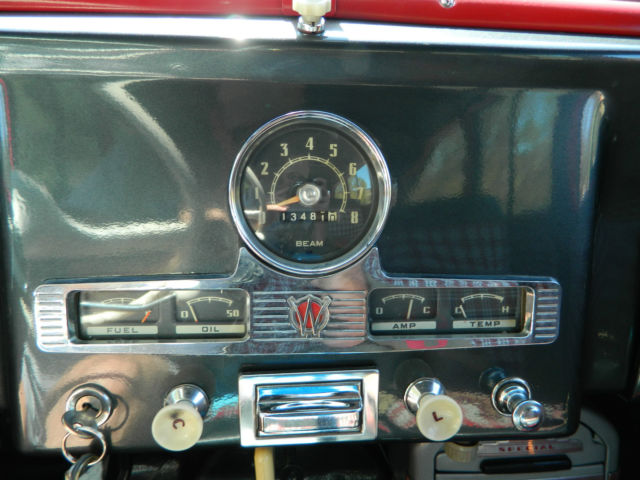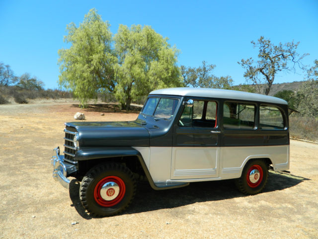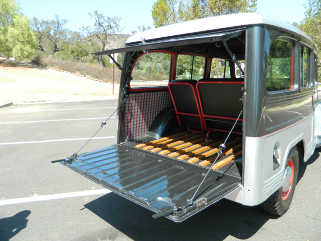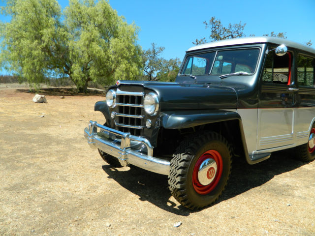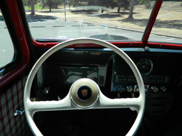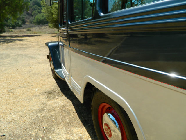 This is a beautiful 1950 Willys Overland SW. Runs really well and has never been modified or manipulated. Original parts and new paint. Draws a crowd every time I pull it out of the garage. Absolutely no rust or bondo, no panels or parts have been cut or replaced. Body and roof are straight as an arrow and roof has no dents or buckles. Floors, frame and fender wells are solid and have no rust. It was truly in amazing condition when I found it. Purchased the car about 7 years ago after it had been in storage building for 25+ years. Owner passed away and family sold it. Most of these (as you likely know) have been cut on, modified and have significant rust at the base of the fenders and wheel wells. This has original everything, fenders, wheel wells, doors, engine and even oak strips that were refinished to perfection. I have aftermarket hubcaps on the car, but still have the originals. Willys has the original 4cyl F-head and transmission (4.73 ratio I believe) with working overdrive transmission. Even heater accessory was original and has been taken apart and fully restored. Here is a list of the improvements or work done the vehicle. - New two tone paint - 2011 (2010 Corvette Gray and Silver combination) - with all brackets, seat frames, window frames, etc being repainted. - fenders, grill, doors, etc were removed for painting - New brakes - 2009 - New tires - 2010 - Engine was rebuilt - 2005 - New glass and rubber all the way around - 2011- Radiator removed, flushed - 2012 - New gas tank, lines and fuel pump - 2012 - New plugs, battery, distributor, etc. - 2012 - New interior in 2012 - great looking herringbone pattern (red and black) - Body was pulled and new rubber cushions installed between body and frame. All gauges; gas, fuel, etc. work fine and car is still running original 6 volt power system. Starts easy and idles nicely. Transmission is a 3sp on the tree with overdrive control. Shifts nicely as well and easy to get used to 3 sp. Car has always been garaged and has not even been rained on since repainted. Great for someone looking to finish few small items and have a solid classic automobile. Or feel free to turn into a hot rod or beach cruiser - yours to be creative at that point. So, body looks great, car runs great... What needs to be done on it. There are a few simple things that I have not finished on the restoration. - Headliner needs installed, but I do have headliner kit for it. - Door welting fabric - Re-chroming of rear bumper (I have the original bumper and end corners) - Needs air cleaner connector) After you read the details and have reviewed the pictures let me know if you have any questions. Thanks so much for looking and happy shopping for your new classic. Chris and Lynda